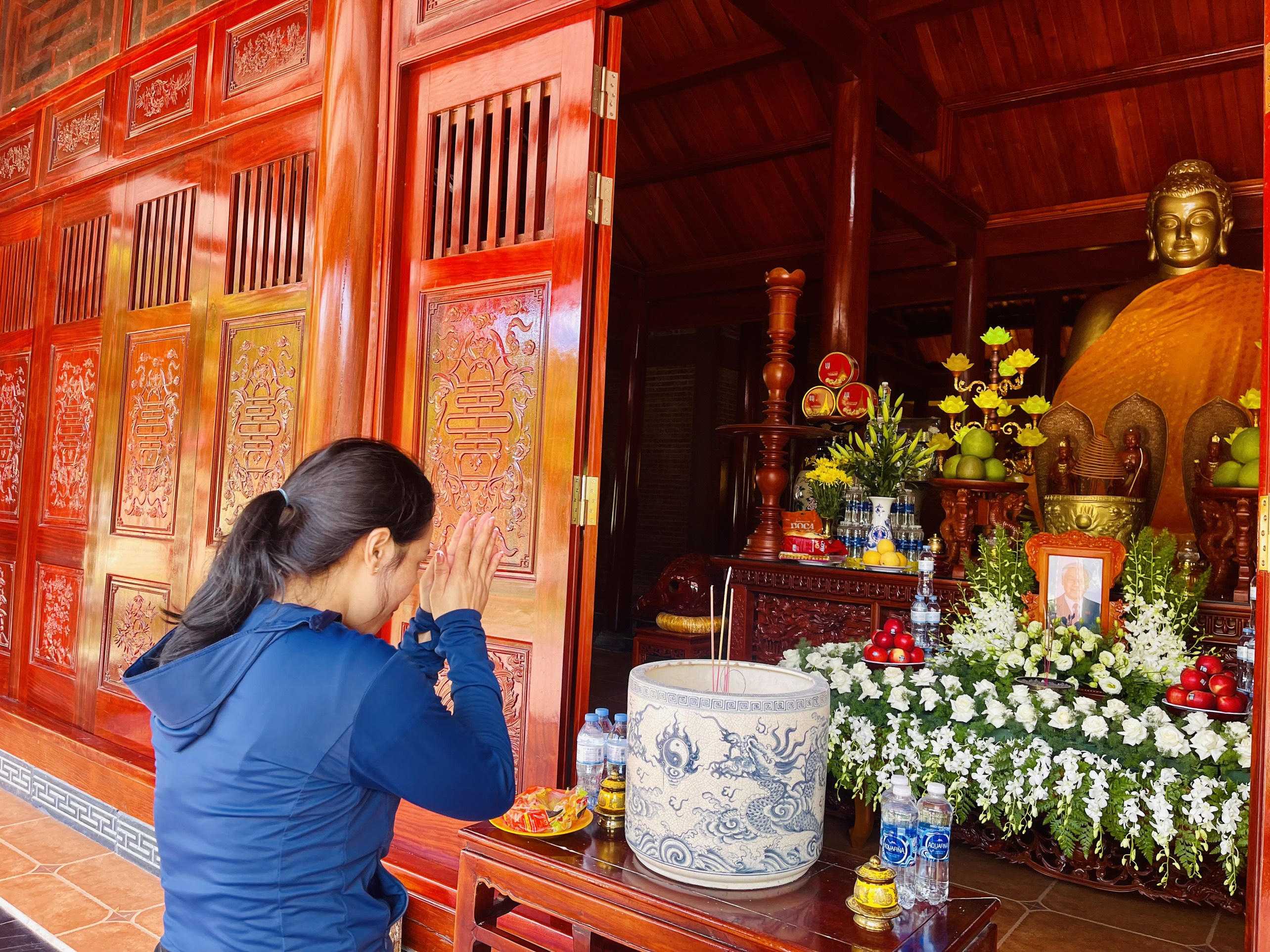 Tăng Ni, Phật tử và nhiều người dân đã đến chùa Phật Tổ để cầu siêu cũng như thắp nén hương tưởng nhớ, tỏ lòng biết ơn Tổng Bí thư Nguyễn Phú Trọng. |
