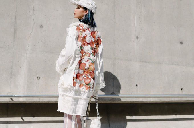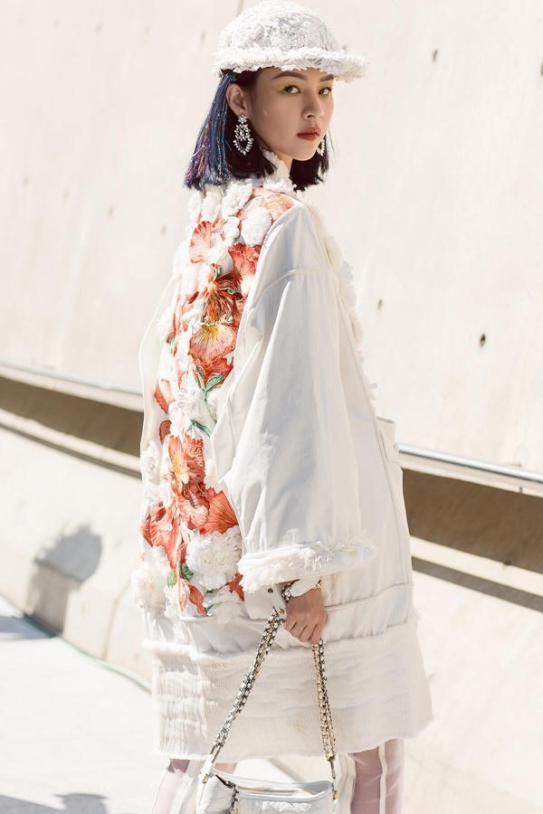 (PLO) -Người mẫu gây ấn tượng trên đường phố Hàn khi mặc áo khoác "Em Hoa" quá khổ đính kết tinh xảo.