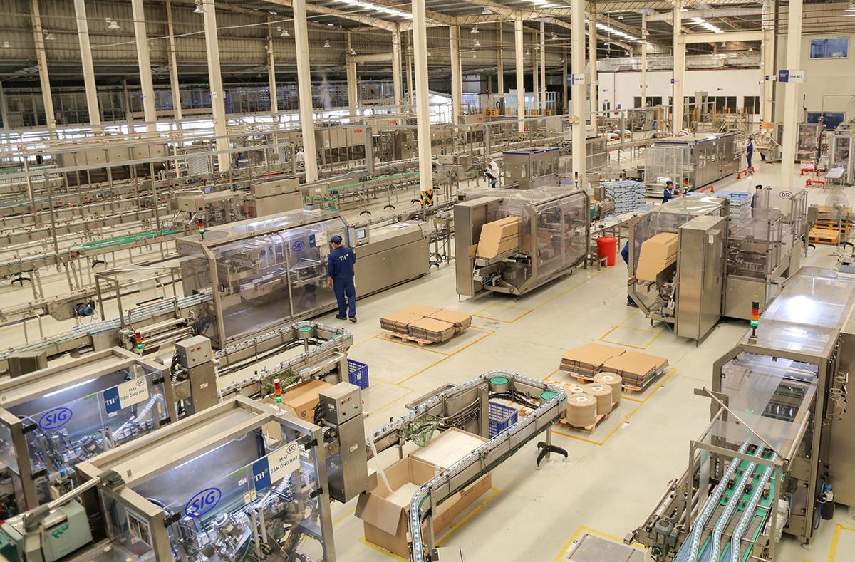 Dây chuyền chế biến sữa tươi TH true MILK tại Nhà máy chế biến sữa tươi sạch TH của Tập đoàn TH tại Nghĩa Đàn (Nghệ An). Hiện nhà máy đang vận hành 26 dây chuyền chế biến sữa và các sản phẩm từ sữa.