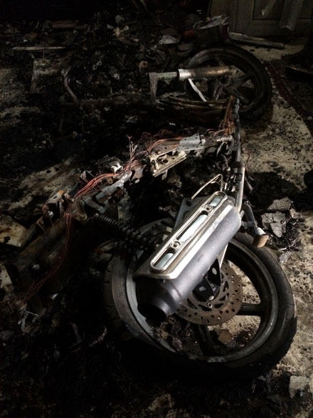 Trong ngôi nhà ám khói đen kịt, một số vật dụng như vô tuyến, những đồ gỗ đã cháy thành than, chiếc xe máy SH giá hàng trăm triệu cháy trơ khung. Gian bếp ngổn ngang bát đĩa, đồ vật cháy không còn hình dạng… Theo ước tính, số tài sản thiệt hại gồm: 3 vô tuyến, 4 loa thùng, 1 xe máy hiệu SH, bàn ghế, tủ lạnh… tổng gái trị khoảng 500 triệu.
