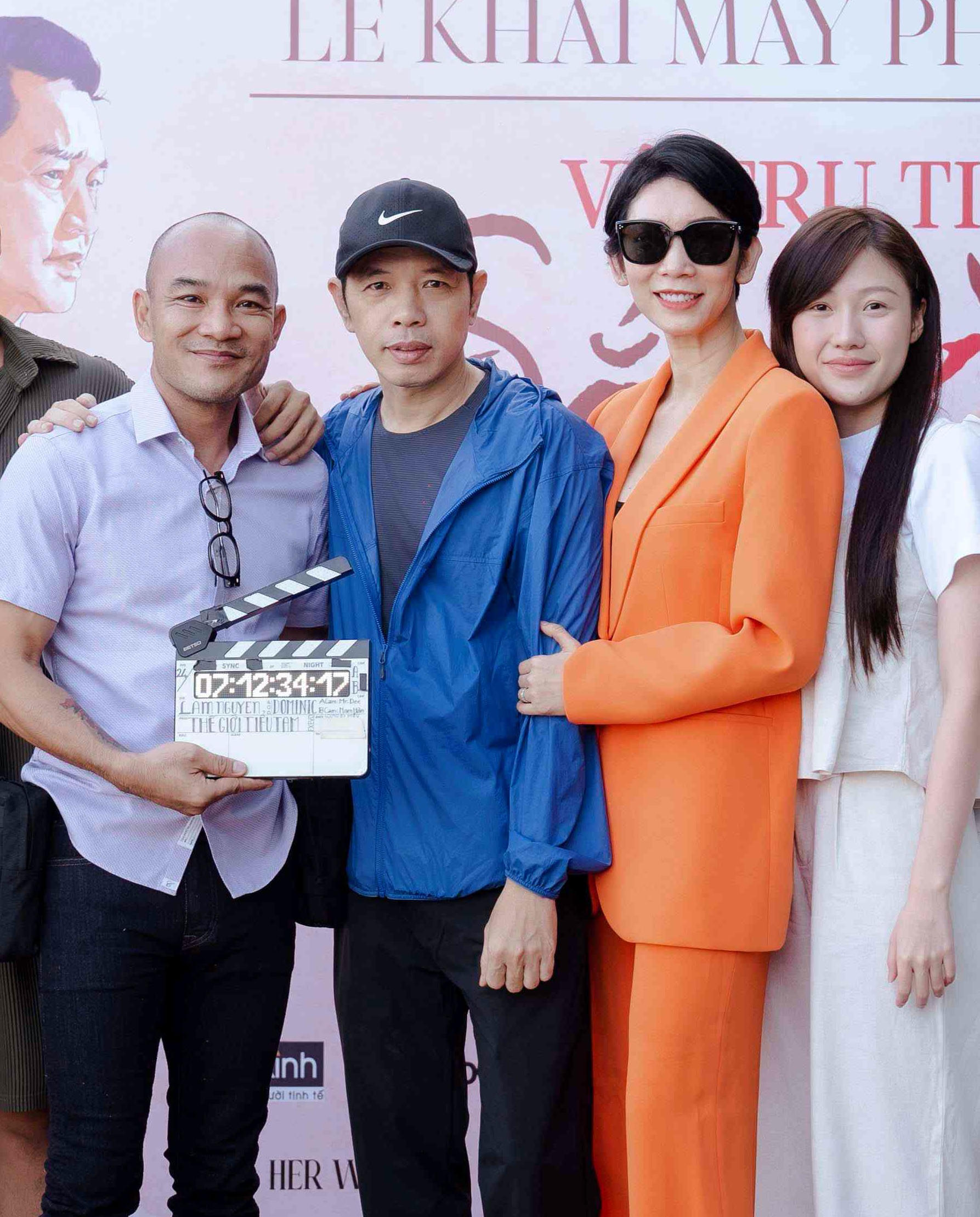 Đạo diễn Ngọc Lâm, Thái Hòa, Xuân Lan, Uyển Ân tại lễ khai máy phim “Vũ trụ tiểu tam: Sắc & tình”. |