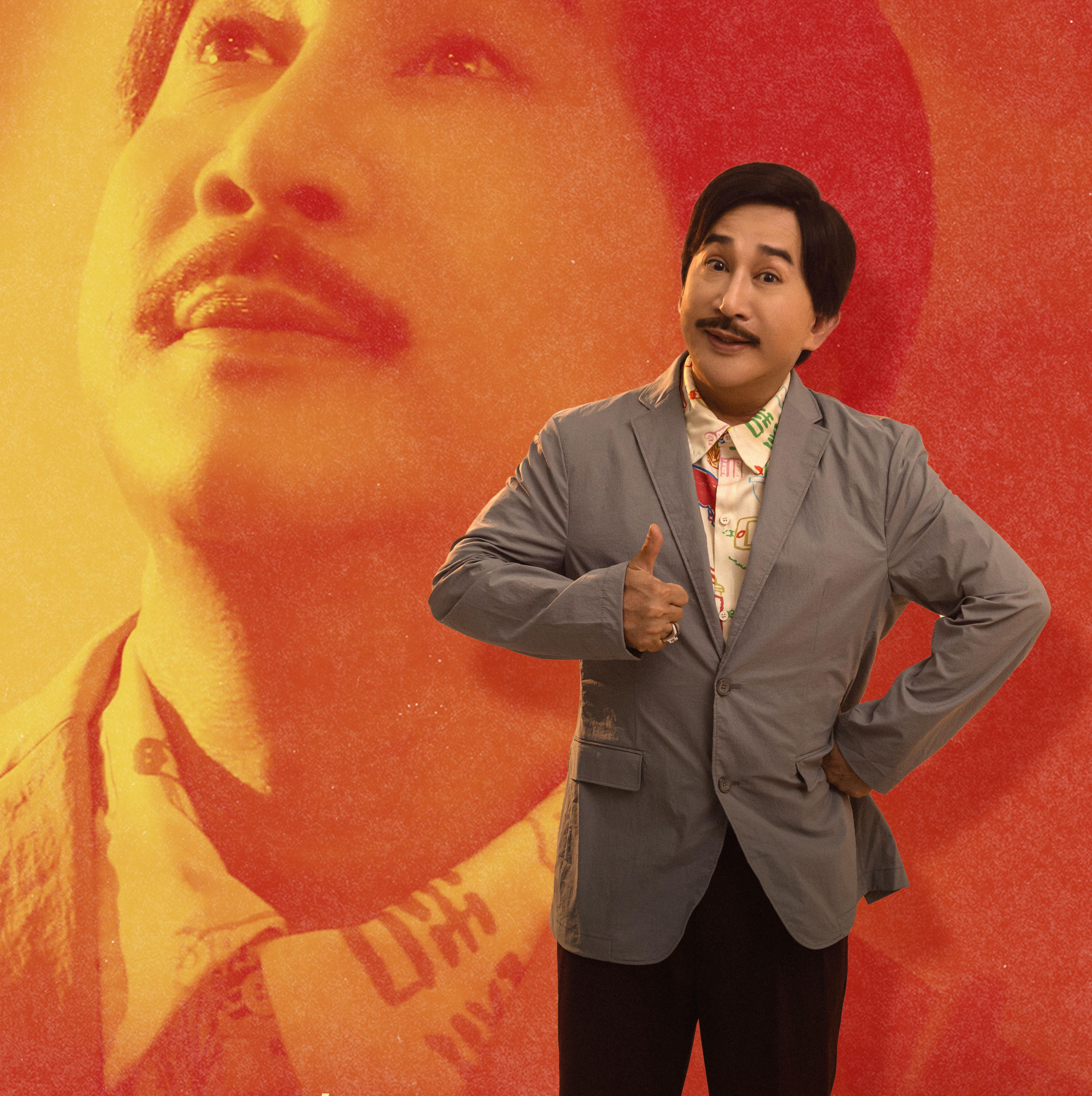 Dù có xuất thân kịch nói nhưng NSND Hồng Vân vốn không lạ lẫm gì với các đoàn ca nhạc tạp kỹ. Trên poster, nữ nghệ sĩ vẫn khiến khán giả bất ngờ bởi vẻ ngoài xuân sắc, vóc dáng thon gọn cùng lối ăn vận, trang điểm làm tóc “chuẩn” phong cách những năm 1990-2000. Trong phim, cô sẽ vào vai một bà chủ tiệm vàng nổi tiếng.