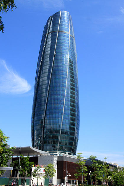 Tòa nhà Trung tâm hành chính Đà Nẵng được bao bọc từ tầng 5 đến tầng 37 toàn bộbằng kính. Ảnh:Nguyễn Đông. |