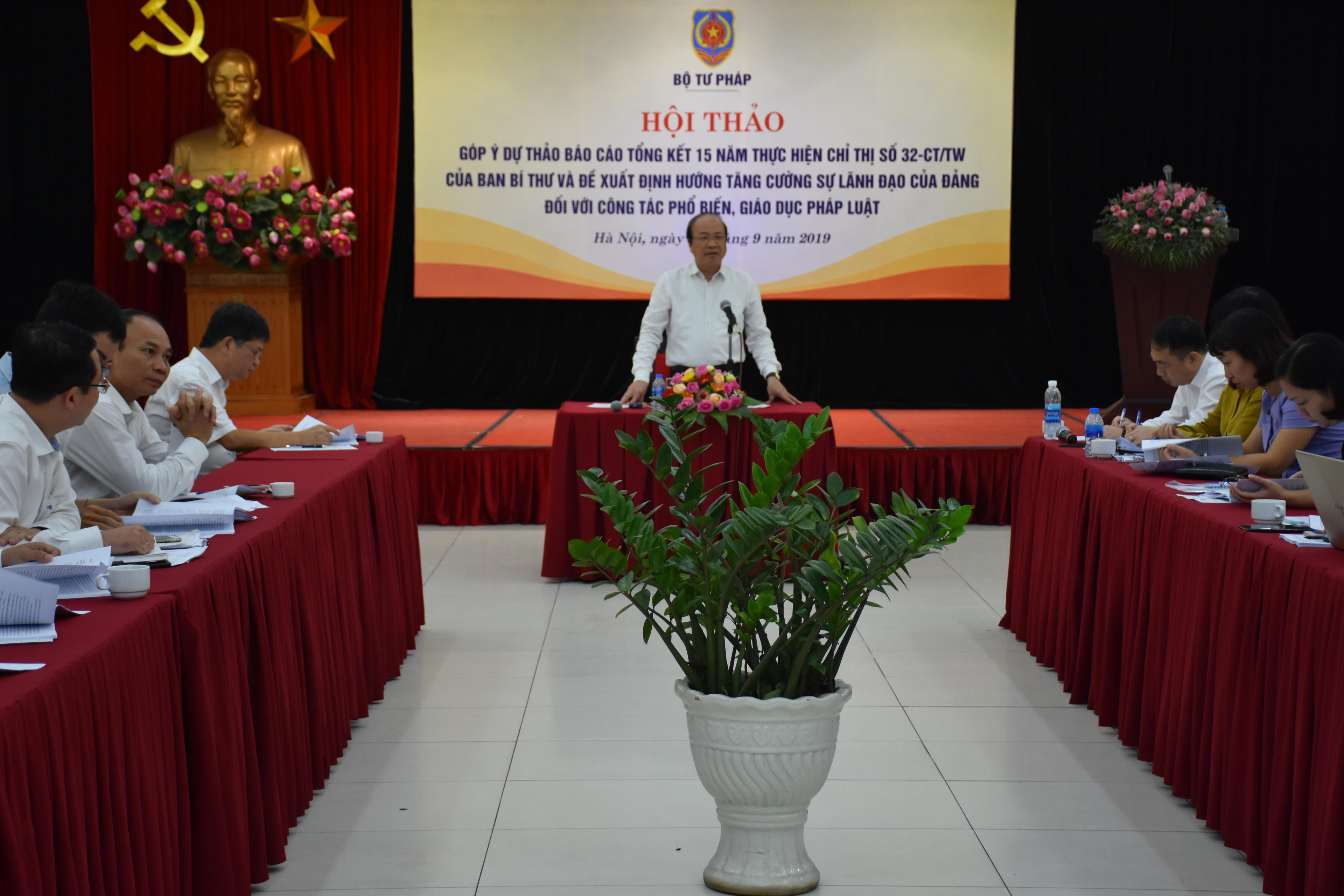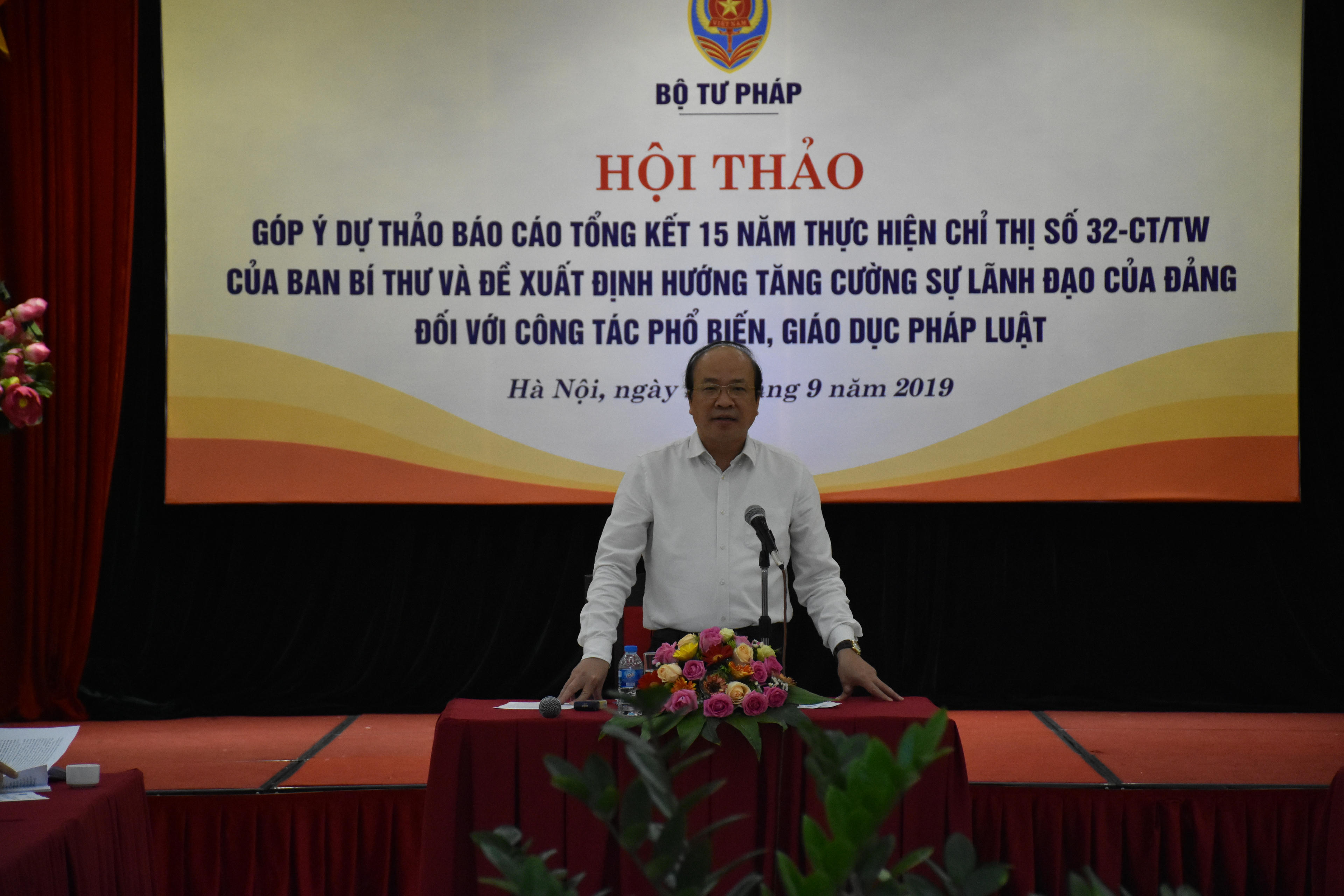 Ghi nhận, tổng hợp, đánh giá cao các phát biểu góp ý của đại biểu, Thứ trưởng Phan Chí Hiếu điểm lại những kết quả nổi bật trong 15 năm thực hiện Chỉ thị 32. Đó là nhận thức của cấp ủy, chính quyền ngày càng được nâng lên, nhiều bộ, ngành, địa phương đã dành nguồn lực thỏa đáng cho công tác PBGDPL; thể chế về công tác PBGDPL được kiện toàn căn bản; công tác PBGDPL ngày càng đổi mới về nội dung, phong phú về hình thức, xuất hiện nhiều mô hình mới, cách làm hay; góp phần nâng cao nhận thức, ý thức pháp luật.