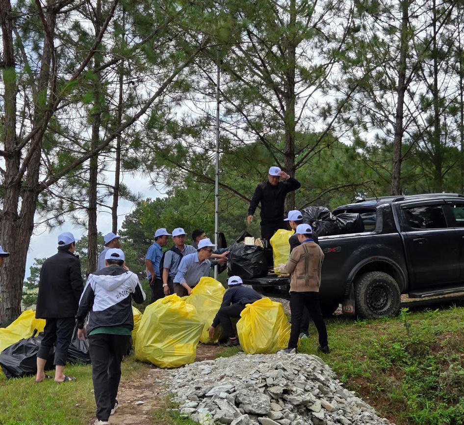 Đại diện các sở, ngành Lâm Đồng thu dọn rác tại khu vực hồ chứa nước Đan Kia. |