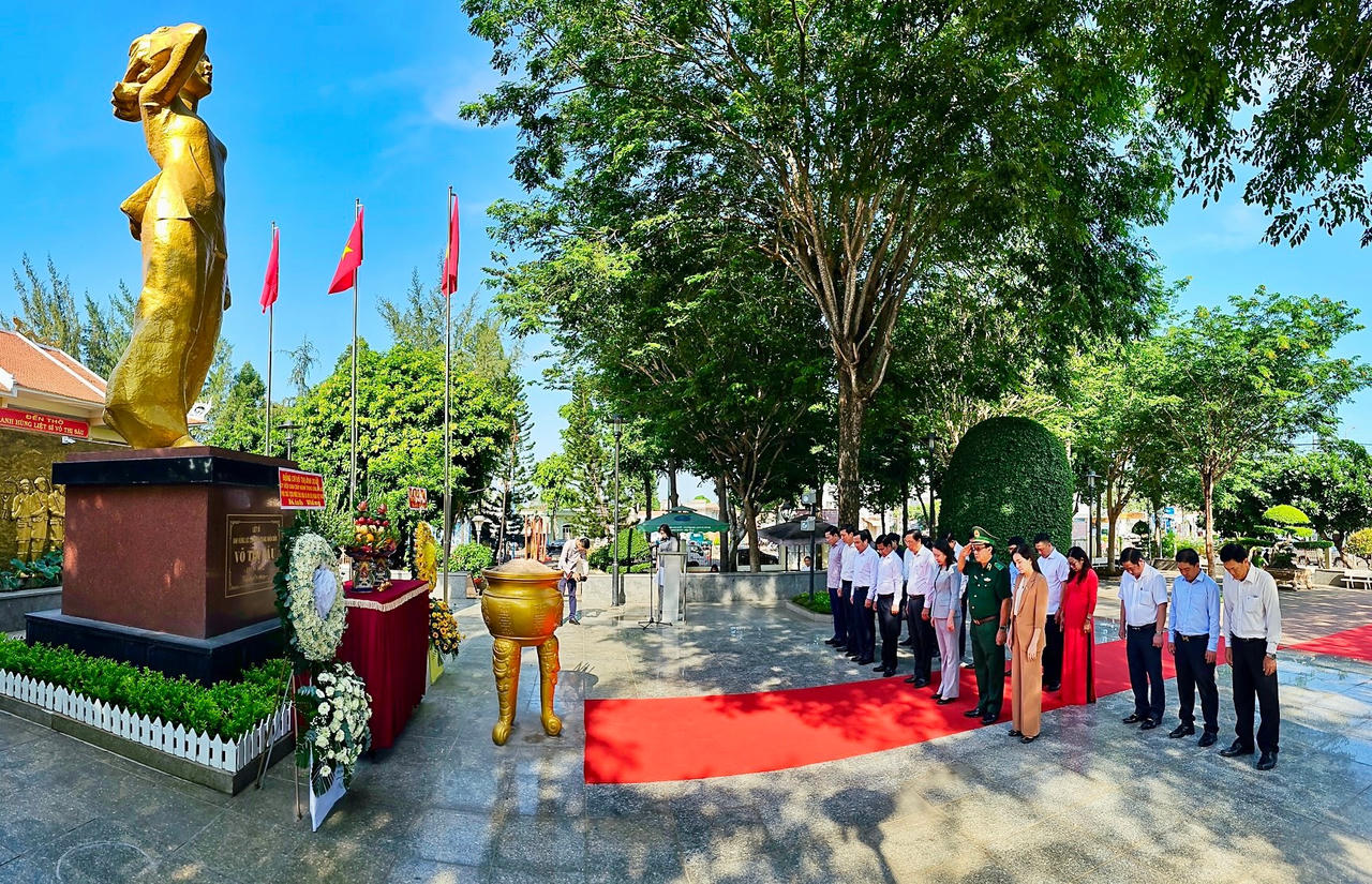 Tham gia cùng đoàn có ông Nguyễn Văn Thọ, Chủ tịch UBND tỉnh Bà Rịa - Vũng Tàu; ông Bùi Chí Thành, Chủ tịch UBMTTQ Việt Nam tỉnh Bà Rịa - Vũng Tàu; ông Lê Hoàng Hải, Phó Chủ tịch HĐND tỉnh Bà Rịa - Vũng Tàu cùng đại diện các sở, ban, ngành và lãnh đạo huyện Đất Đỏ. Trong không khí trang nghiêm, các đại biểu đã bày tỏ lòng biết ơn vô hạn đối với sự hy sinh của nữ Anh hùng Liệt sĩ Võ Thị Sáu.