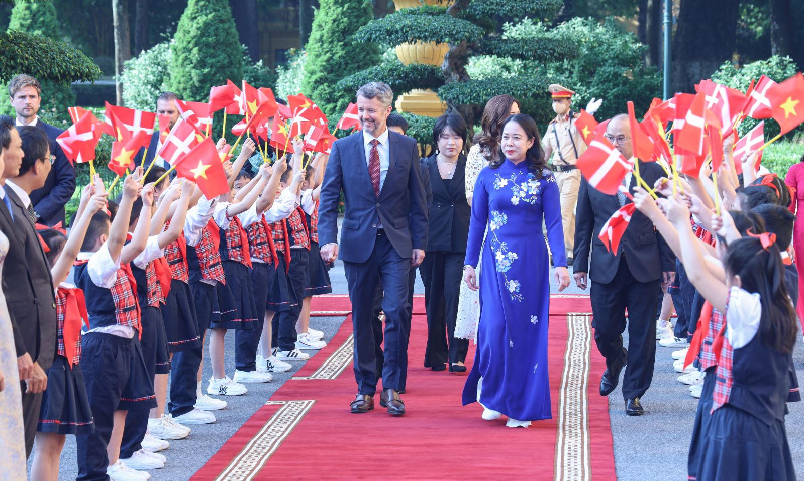 (PLVN) - Sáng 1/11, tại Phủ Chủ tịch, Phó Chủ tịch nước Võ Thị Ánh Xuân chủ trì lễ đón và hội kiến Thái tử kế vị Đan Mạch Frederik và Công nương Phu nhân Mary Elizabeth thăm chính thức Việt Nam, nhân dịp kỷ niệm 50 năm quan hệ ngoại giao Việt Nam – Đan Mạch.
