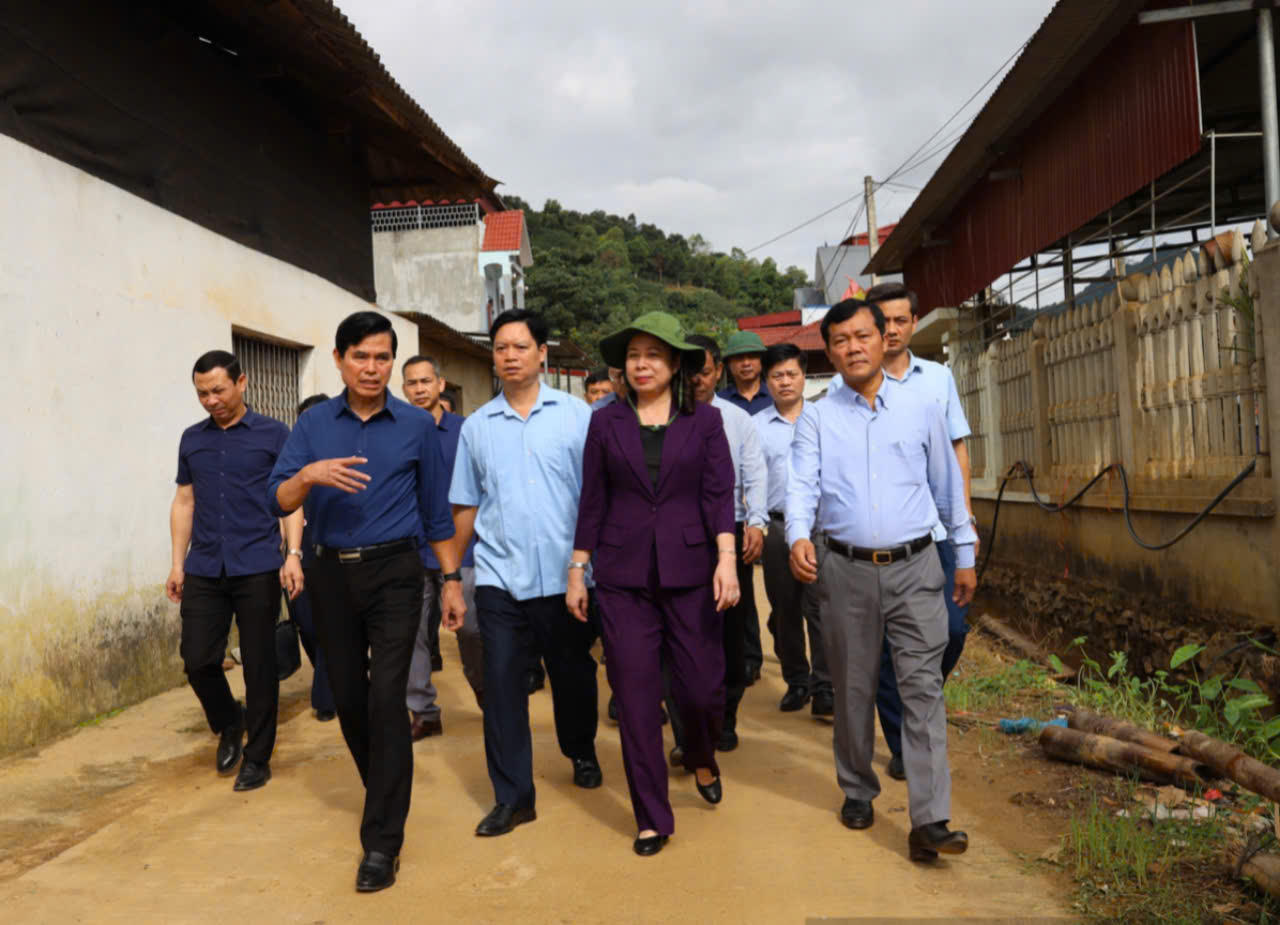 Phó Chủ tịch nước Võ Thị Ánh Xuân và đoàn công tác đã đi kiểm tra tình hình thiệt hại, công tác khắc phục hậu quả do lũ ống, lũ quét. (Ảnh: CTV) |