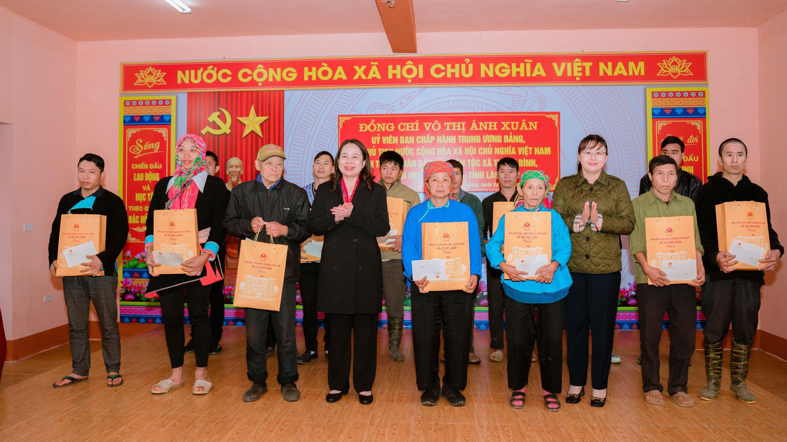 Phó Chủ tịch nước Võ Thị Ánh Xuân tặng quà các hộ khó khăn xã Thanh Bình.