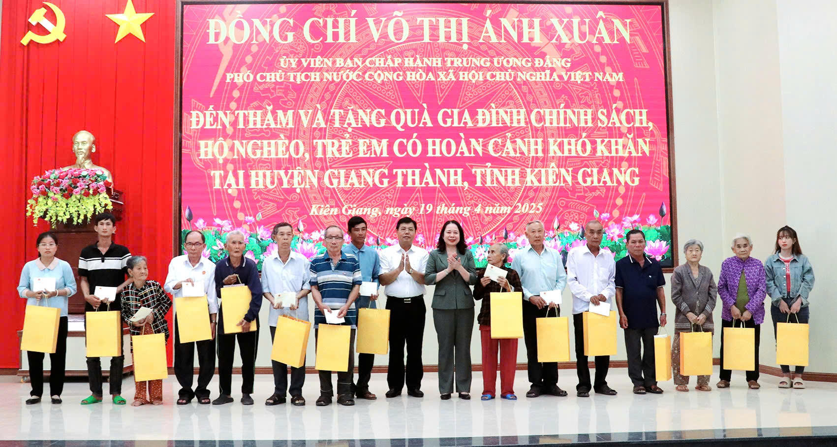Phó Chủ tịch nước Võ Thị Ánh Xuân cùng lãnh đạo tỉnh Kiên Giang tặng quà gia đình chính sách huyện Giang Thành |