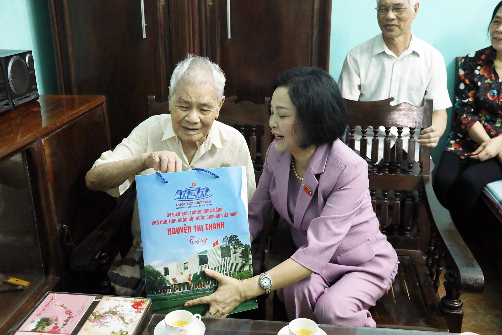 Phó Chủ tịch Quốc hội Nguyễn Thị Thanh và Bí thư Tỉnh uỷ Ninh Bình Đoàn Minh Huấn thăm hỏi, tặng quà Mẹ Việt Nam Anh hùng Lê Thị Thận (phường Đông Thành, thành phố Ninh Bình)
