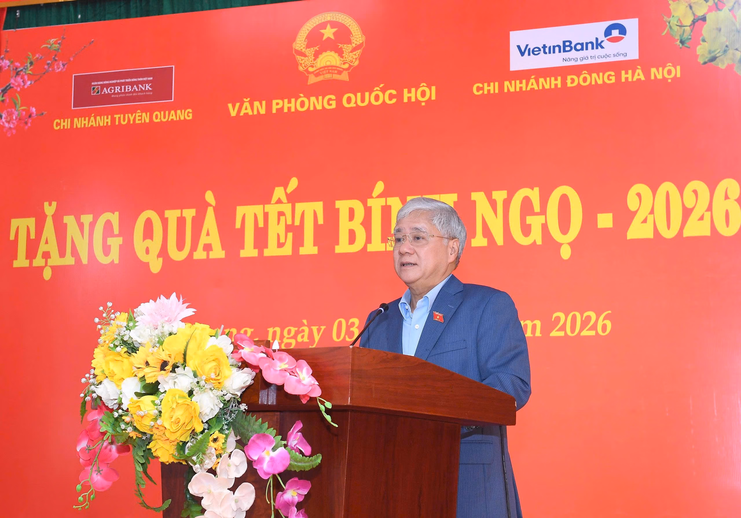 Phó Chủ tịch Thường trực Quốc hội nhấn mạnh, Đảng và Nhà nước, luôn nhất quán quan điểm lấy con người làm trung tâm của sự phát triển, chăm lo đời sống vật chất, tinh thần cho nhân dân, nhất là các đối tượng chính sách, người có công, người yếu thế, coi đây là nhiệm vụ thường xuyên, lâu dài của cả hệ thống chính trị. Những hoạt động ý nghĩa của lãnh đạo Đảng, Nhà nước và các tổ chức, đoàn thể, địa phương vào dịp Tết nhằm chia sẻ với những hoàn cảnh khó khăn, bảo đảm mọi người, mọi nhà đều có Tết, không có ai bị bỏ lại phía sau.