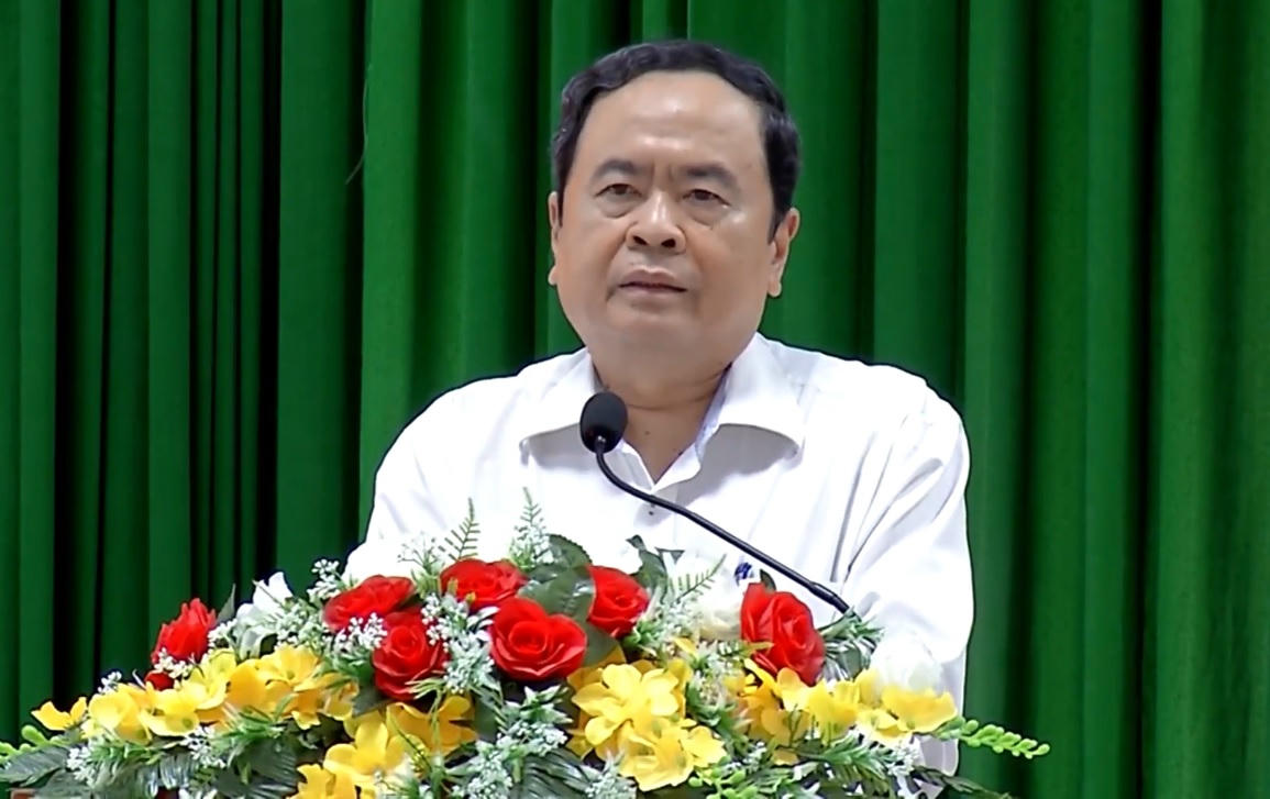 Phó Chủ tịch Thường trực Quốc hội Trần Thanh Mẫn phát biểu tại buổi trao quà. |
