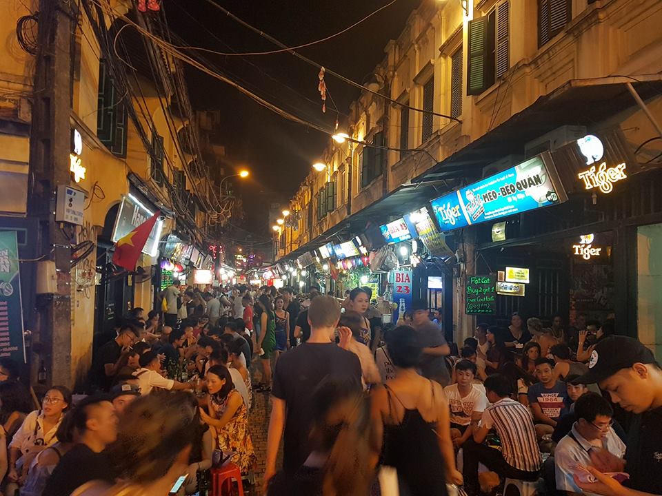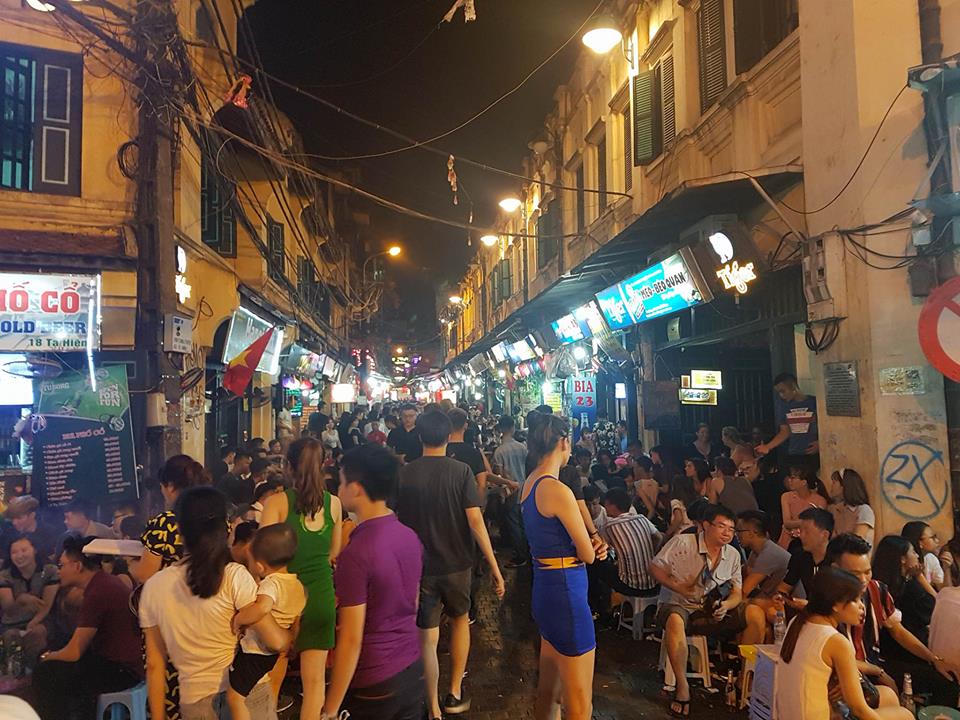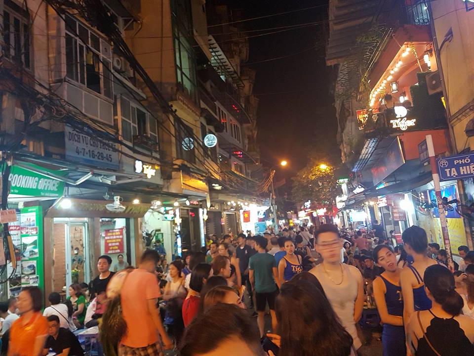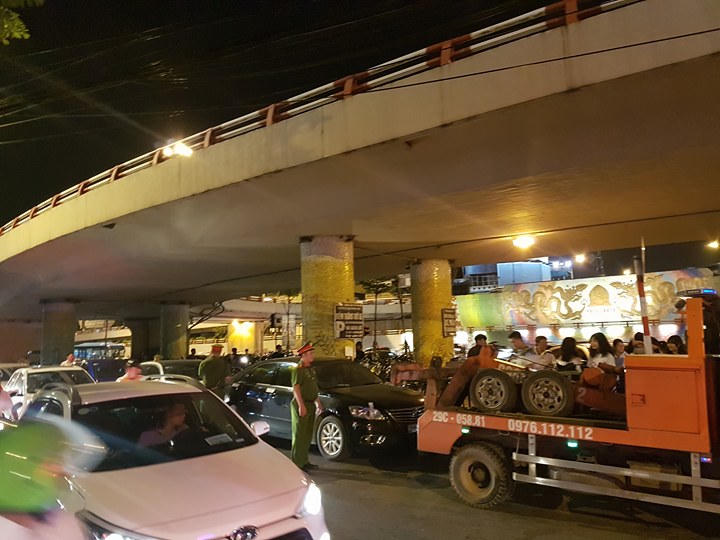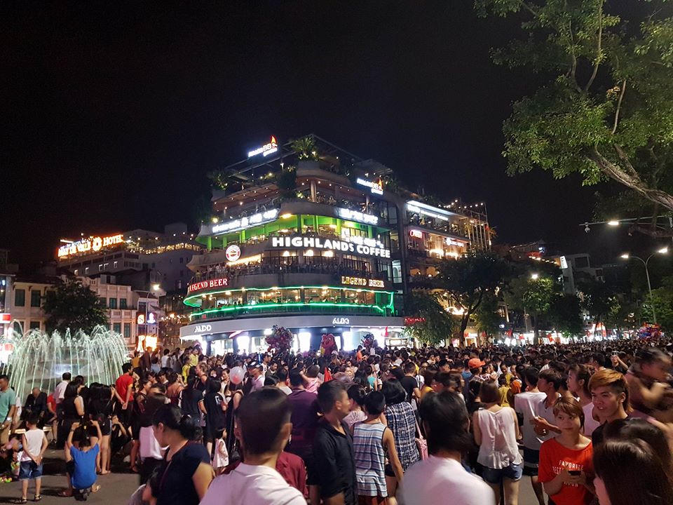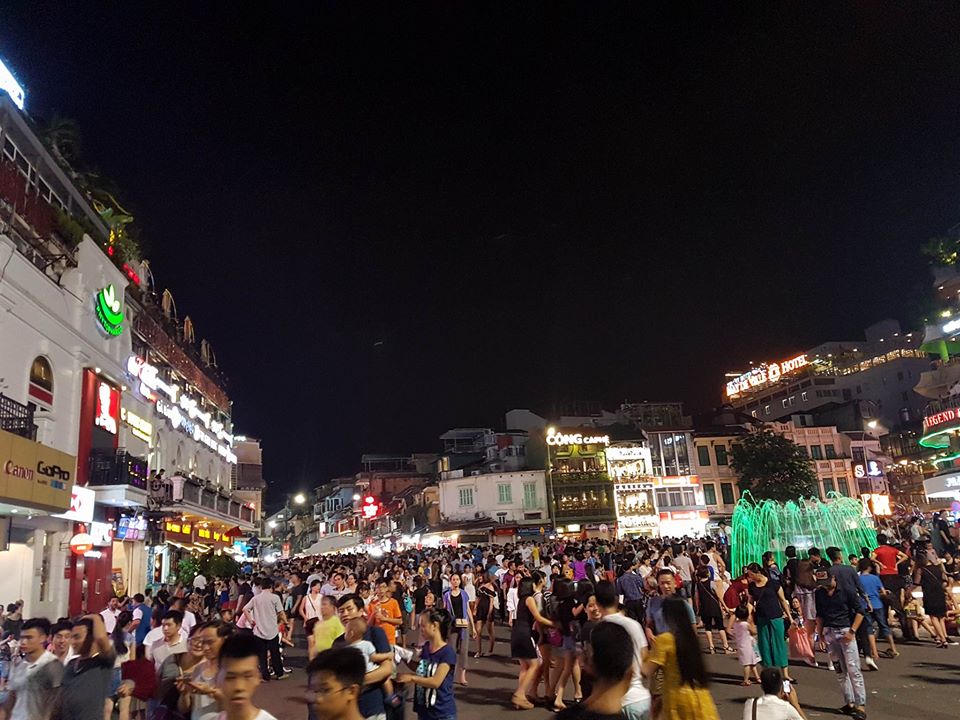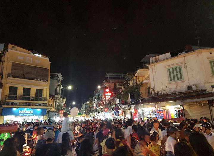 | Từ 19h, hàng dòng người đổ về khu vực phố đi bộ và phố cổ khiến khu vực này trở nên quá tải |