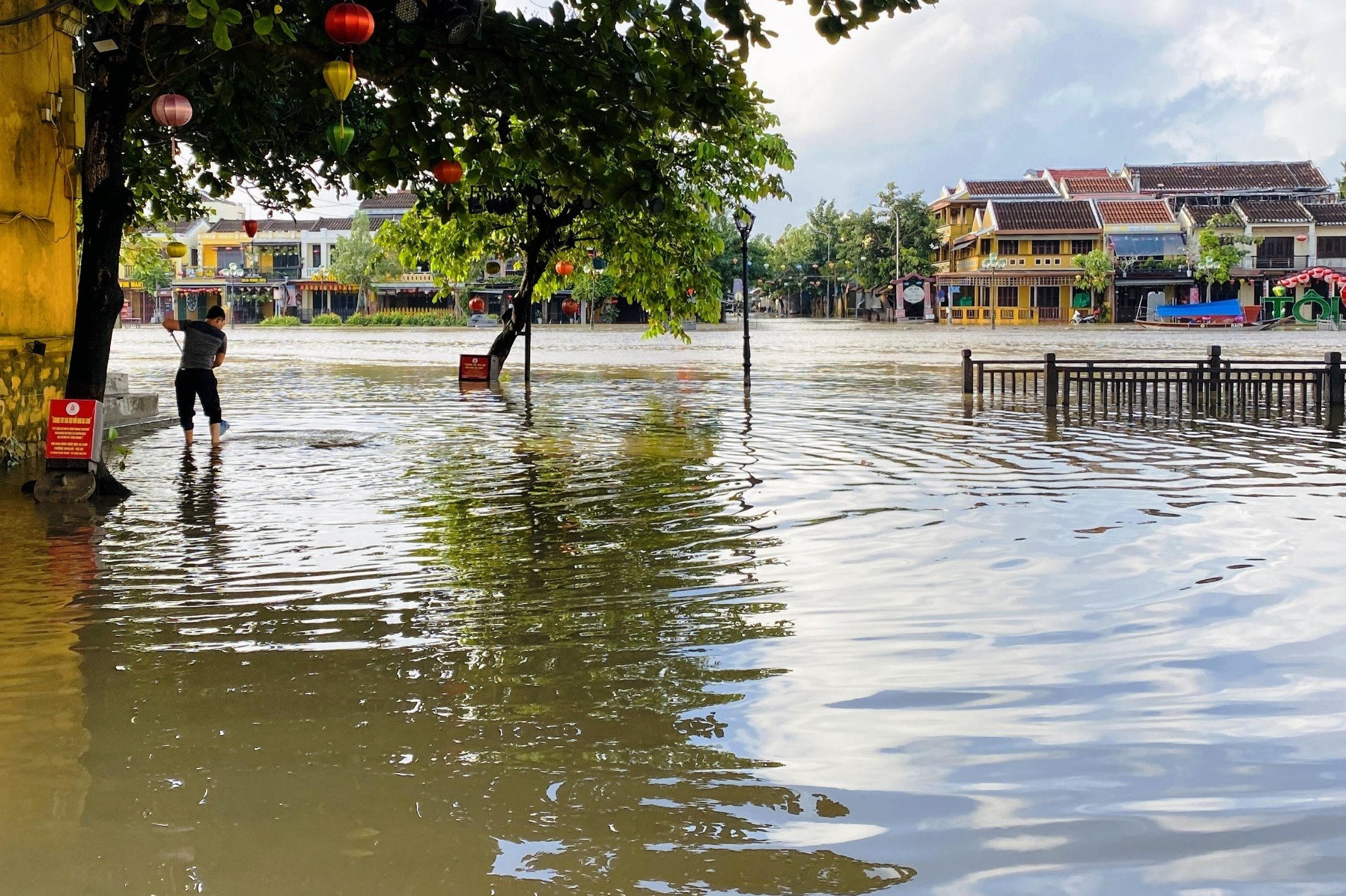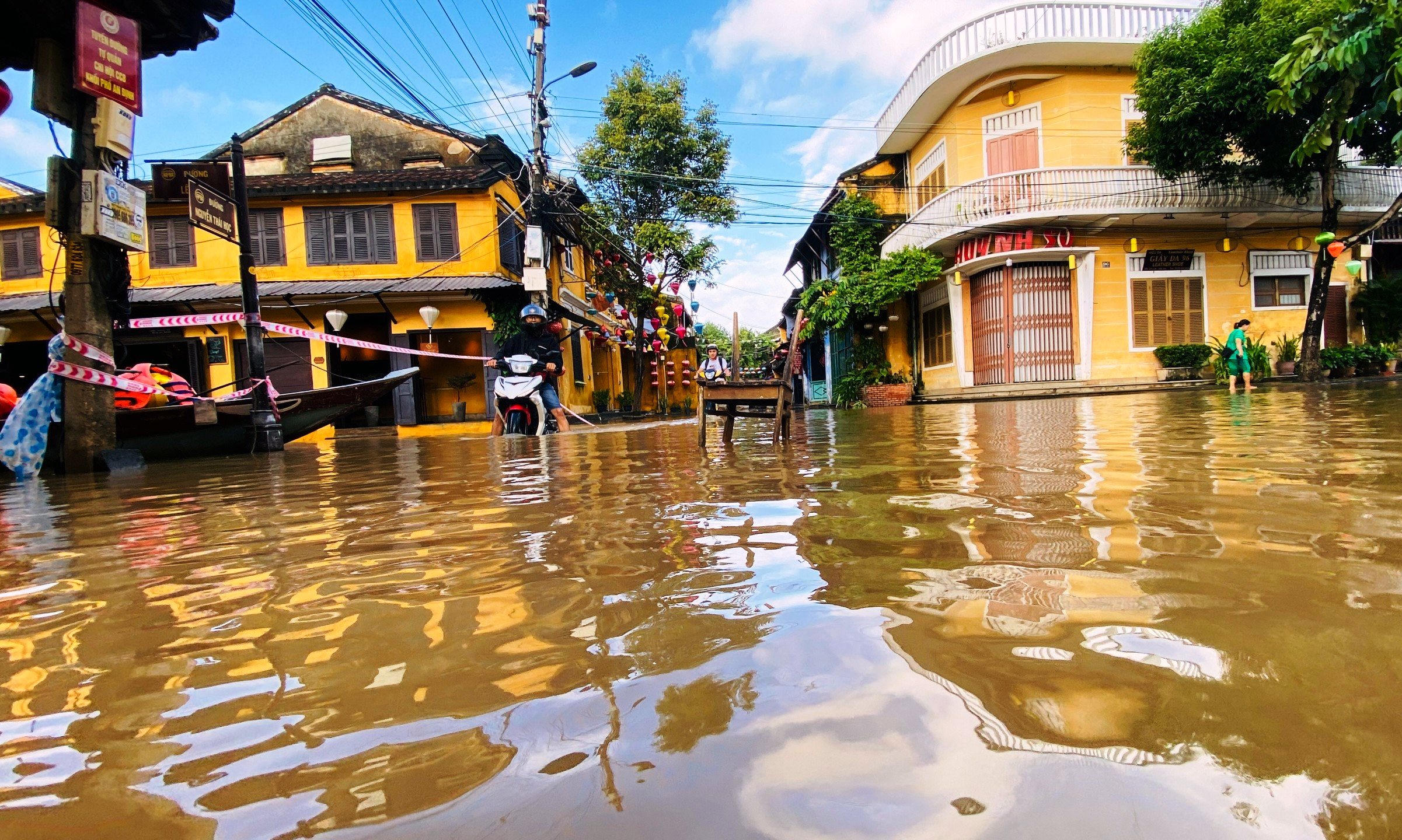 (PLVN) - Mưa lớn kéo dài kèm các thủy điện đồng loạt xả lũ khiến mực nước sông Hoài (TP Hội An, Quảng Nam) dâng cao, gây ngập nhiều tuyến đường. Người dân trong khu phố cổ bơi thuyền để đi lại, nhiều du khách lội nước chụp ảnh "check in"