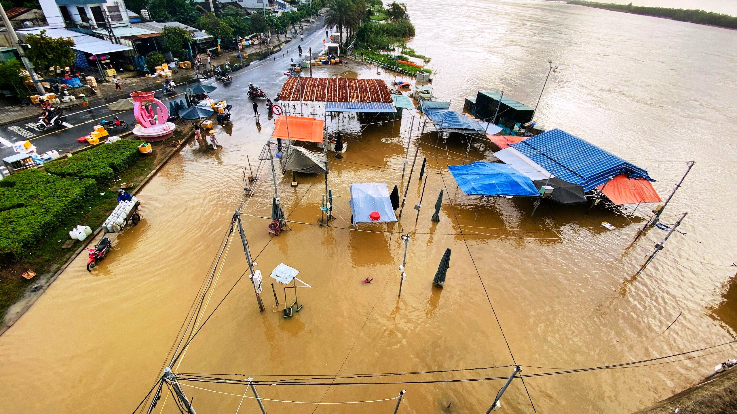 “Cả đêm qua tới giờ tôi không chợp mắt, cứ ngồi canh nếu nước tràn vào nhà thì dọn đồ. Rất may, nước chỉ mấp mé bậc thềm rồi rút dần”, bà Hai nói.
