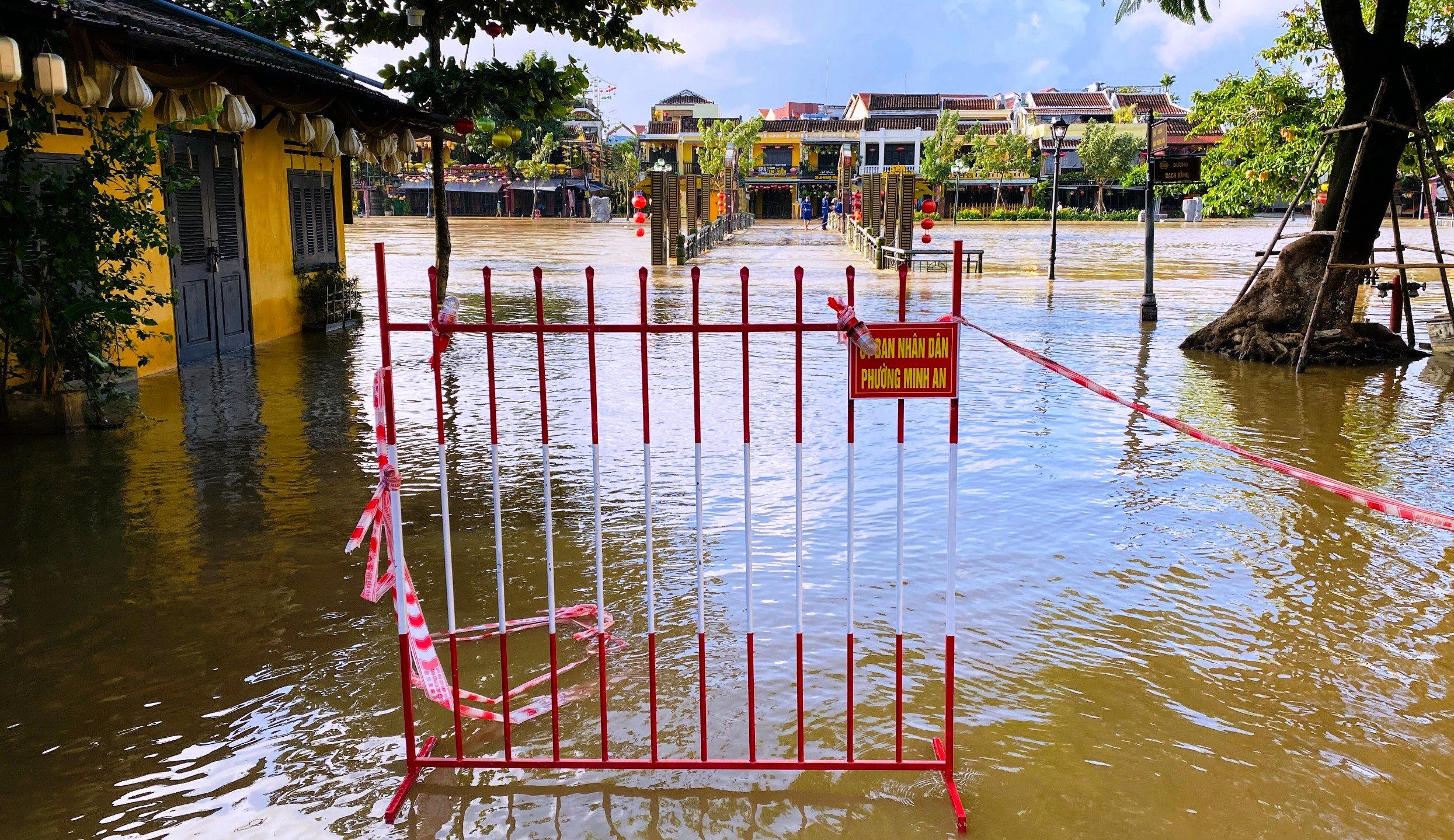 Ngoài phố cổ, nhiều khu vực thấp trũng ở TP Hội An như đường vào làng gốm Thanh Hà, phường Thanh Hà cũng đang chìm trong nước.