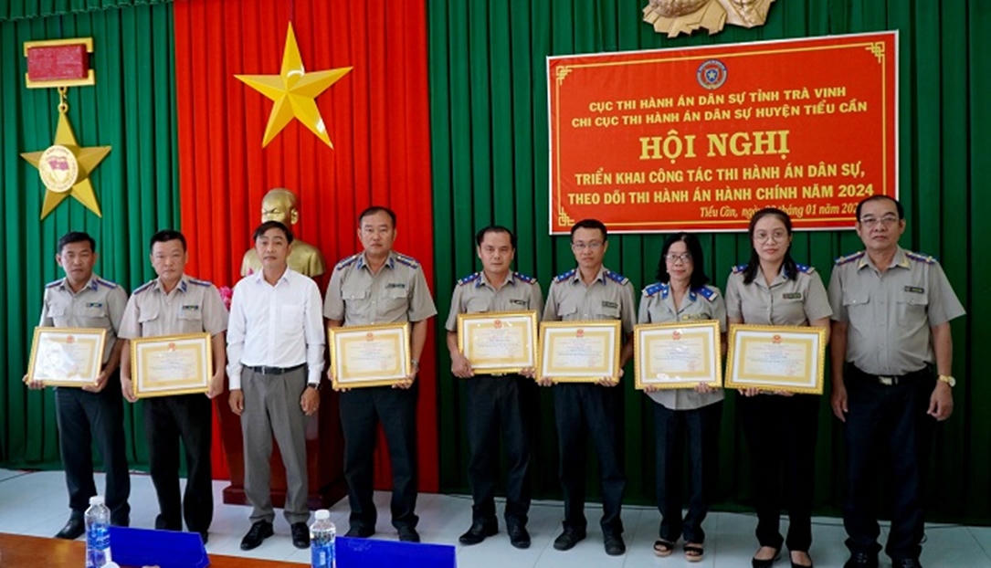 Phó Cục trưởng Trần Việt Hồng trao các danh hiệu khen thưởng cho tập thể, cá nhân Chi cục THADS huyện Tiểu Cần |