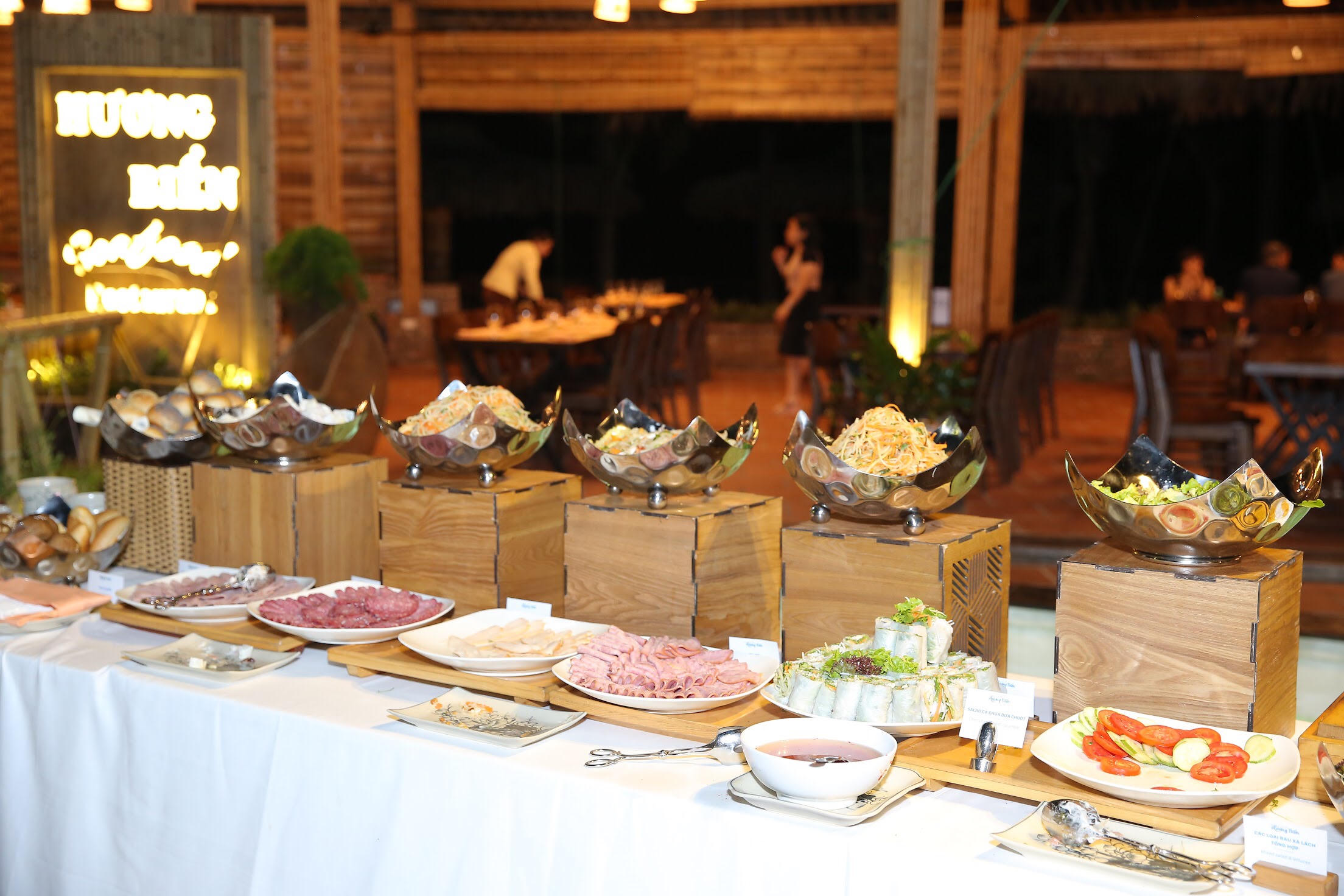 | Nhà hàng hải sản Hương Biển mới khai trương, khu ẩm thực chợ quê, tiệc buffet tại bể bơi nước mặn cũng kín khách trong dịp này |