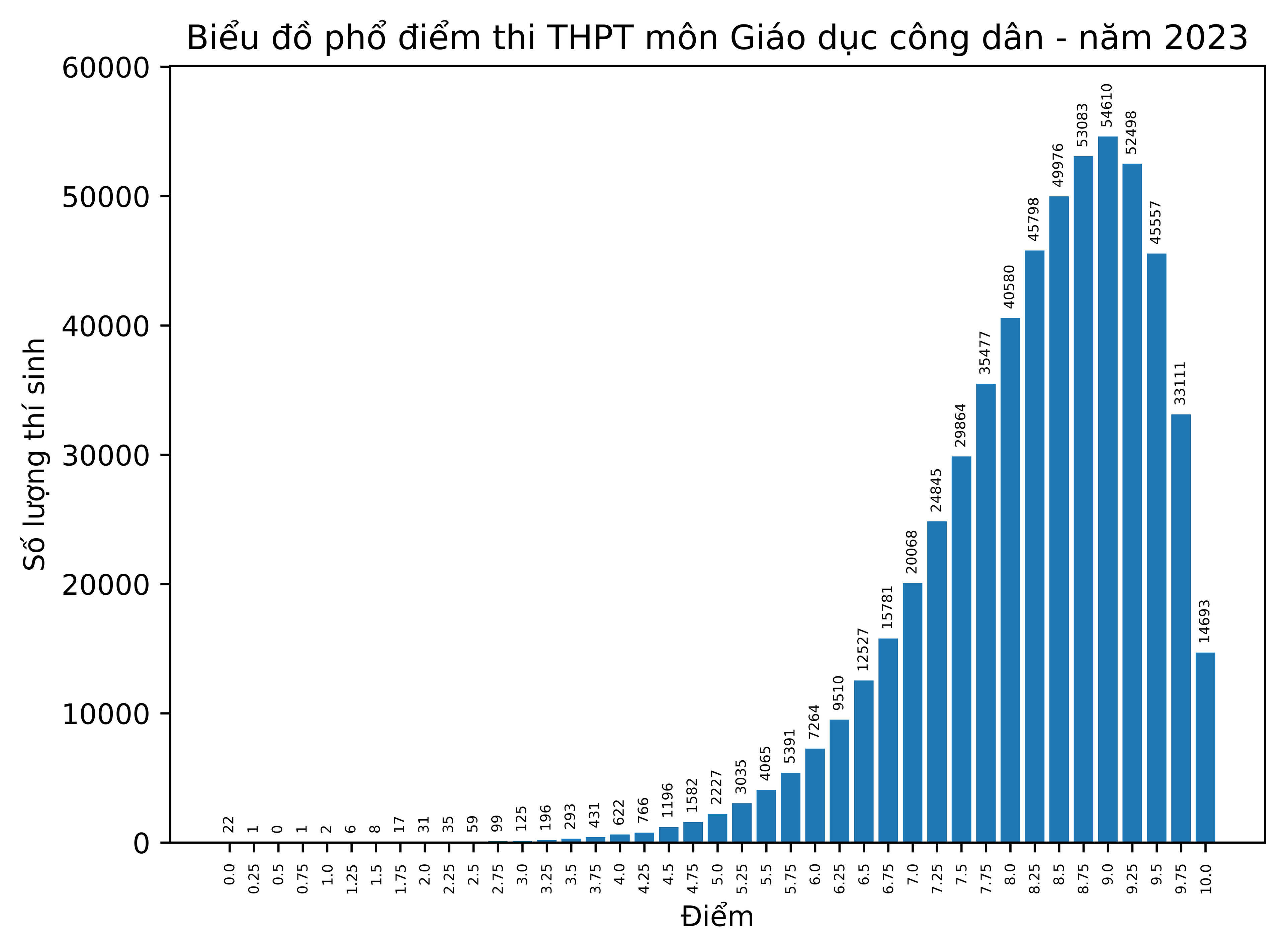 Phổ điểm tốt nghiệp 2023: Gần 14.700 điểm 10 môn GDCD