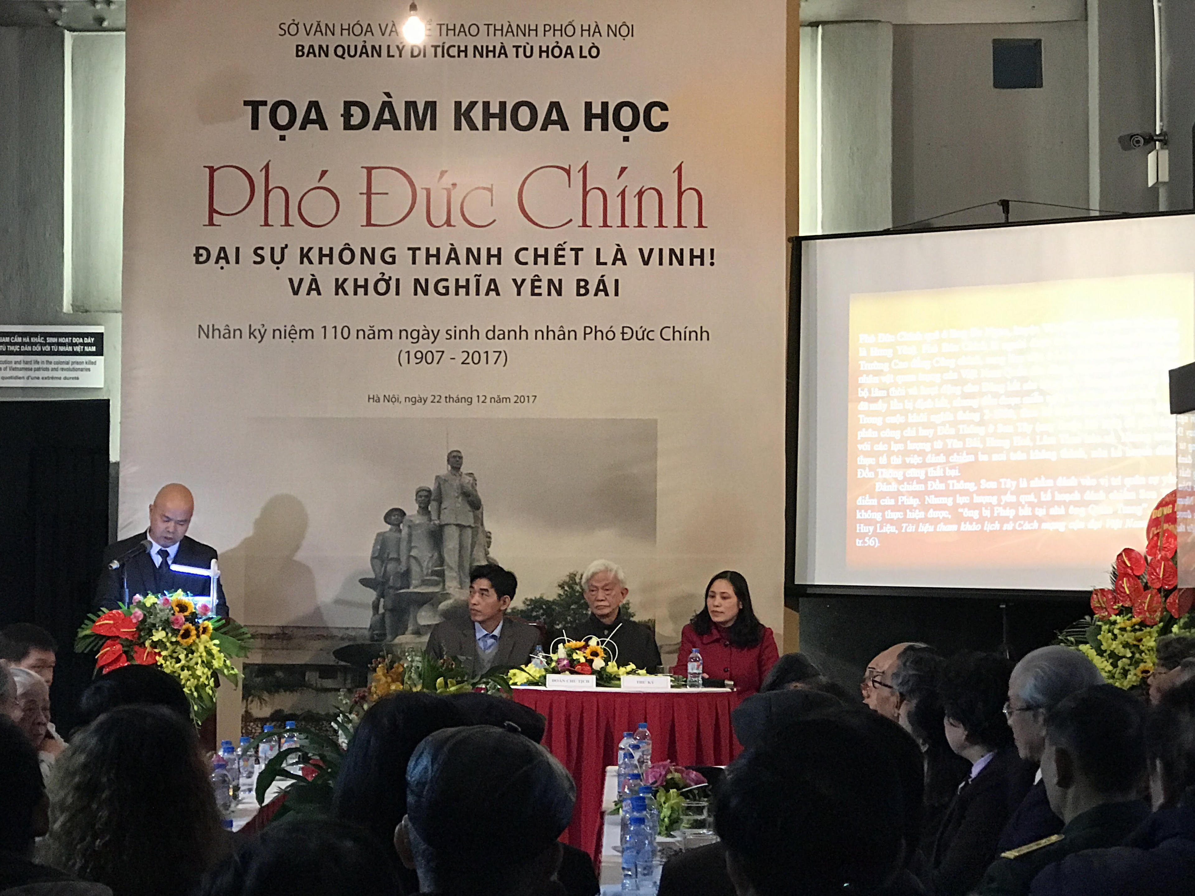 (PLO) - Nhân kỷ niệm 110 năm Ngày sinh danh nhân Phó Đức Chính (1907 - 2017), Ban Quản lý Di tích Nhà tù Hỏa Lò phối hợp với dòng họ Phó tổ chức Tọa đàm khoa học: “Phó Đức Chính - Đại sự không thành chết là vinh! Và cuộc khởi nghĩa Yên Bái” di tích Nhà tù Hỏa Lò.