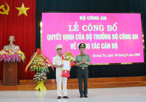 Sáng 26/6, tại Công an tỉnh Quảng Trị đã diễn ra lễ công bố Quyết định của Bộ trưởng Bộ Công an về công tác cán bộ.