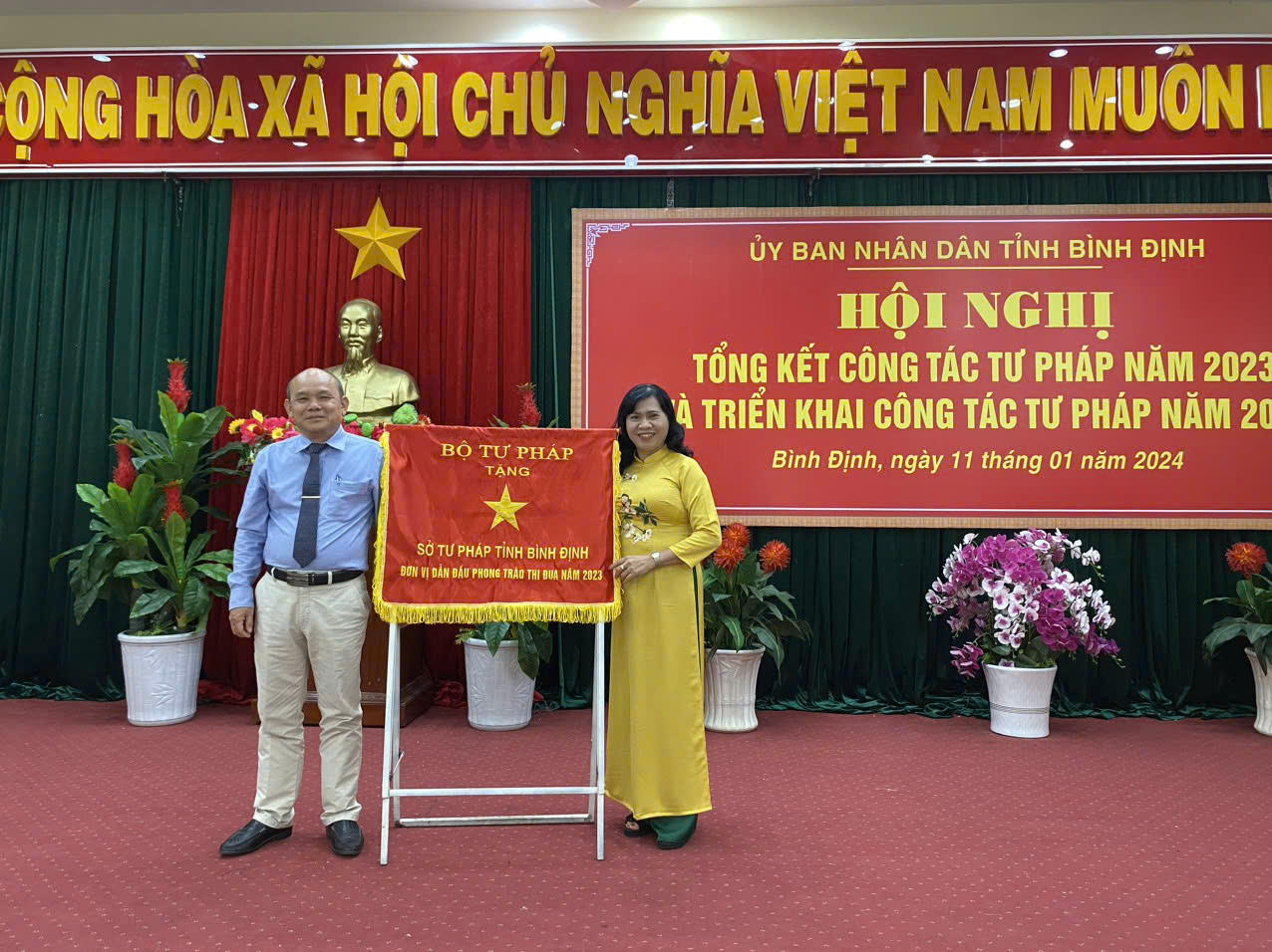 Tập thể Sở Tư pháp tỉnh Bình Định nhận cờ thi đua của Bộ Tư pháp |