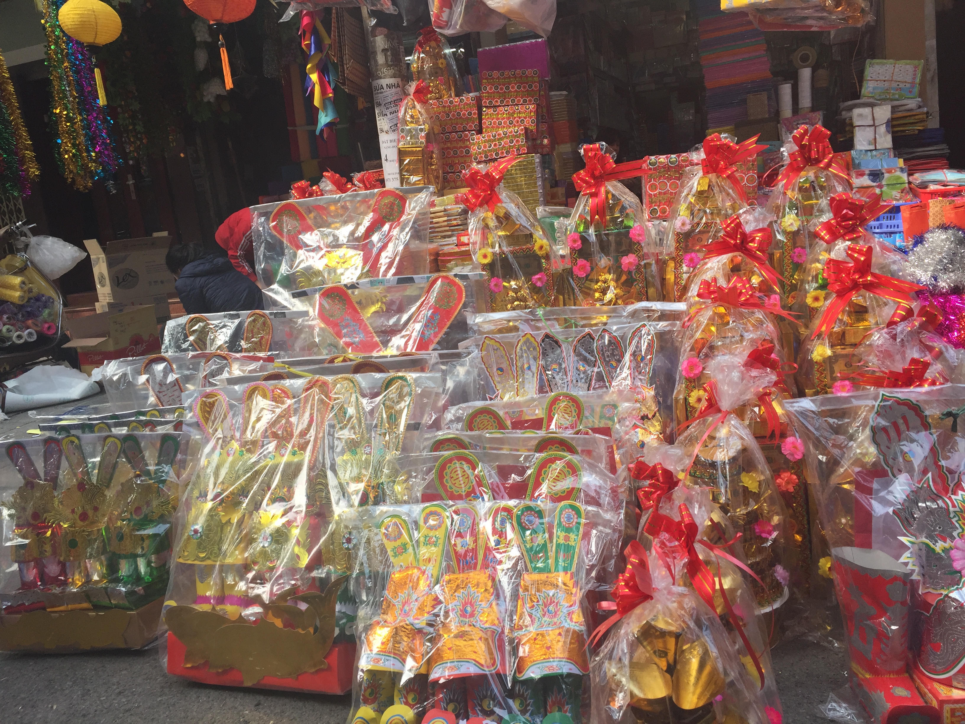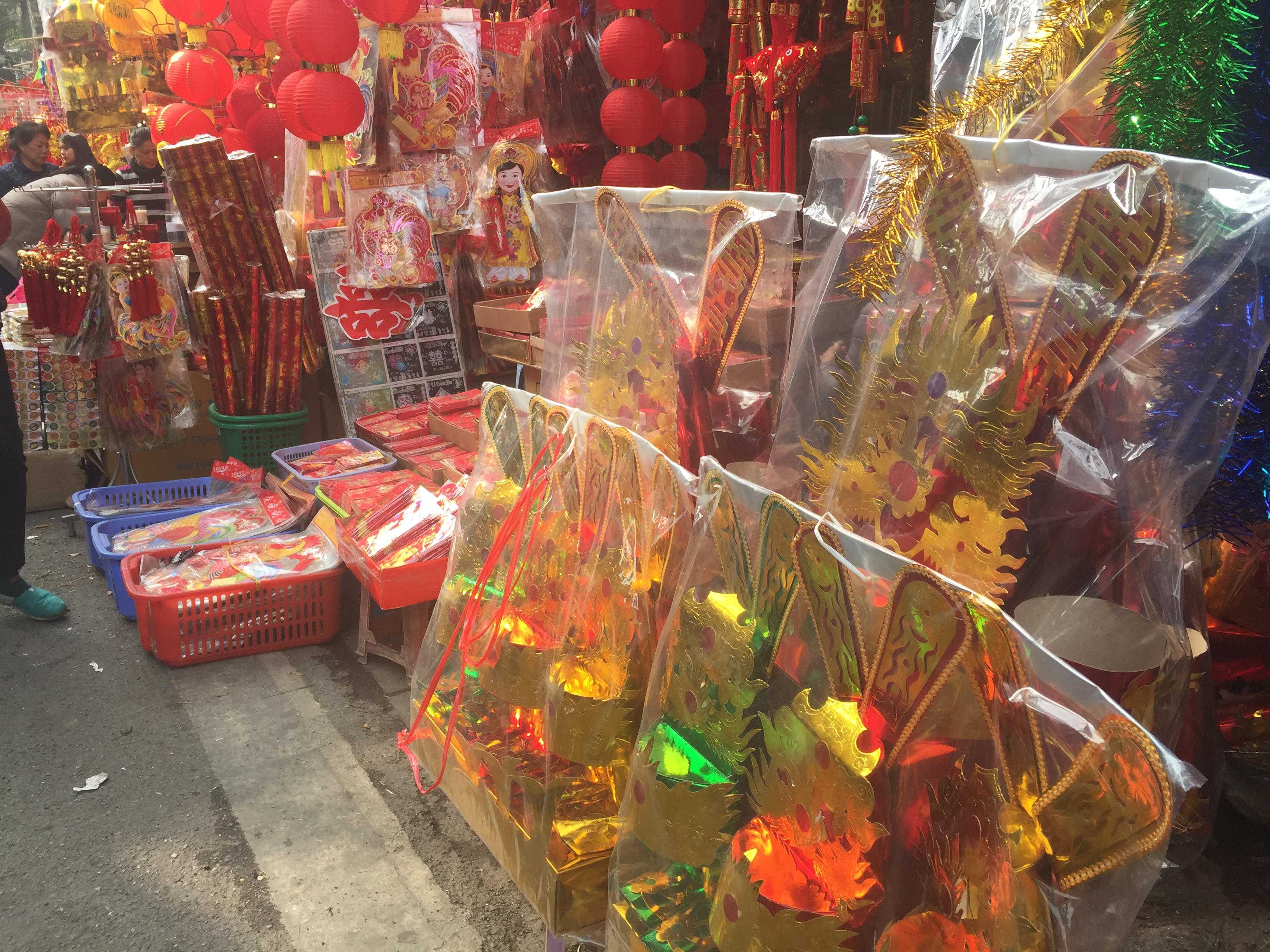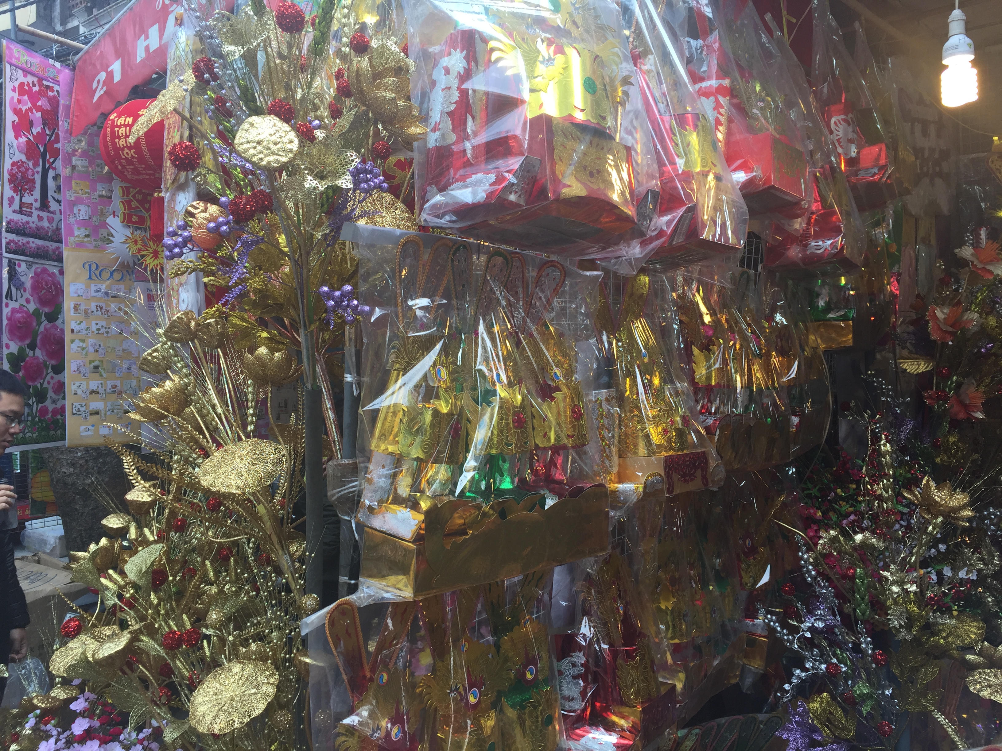 Nhiều vật dụng trang trí phục vụ dịp Tết Nguyên Đán Đinh Dậu 2017 cũng đã được bày bán tại khắp các cửa hàng trên phố Hàng Mã và một vài cửa hàng ở các phố lân cận.