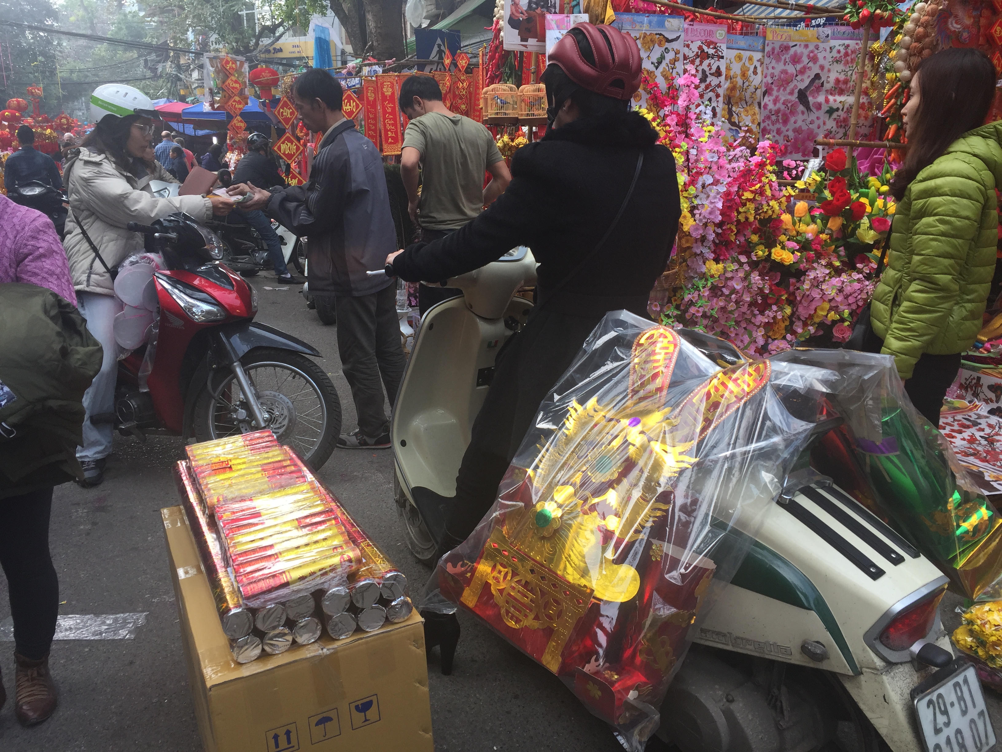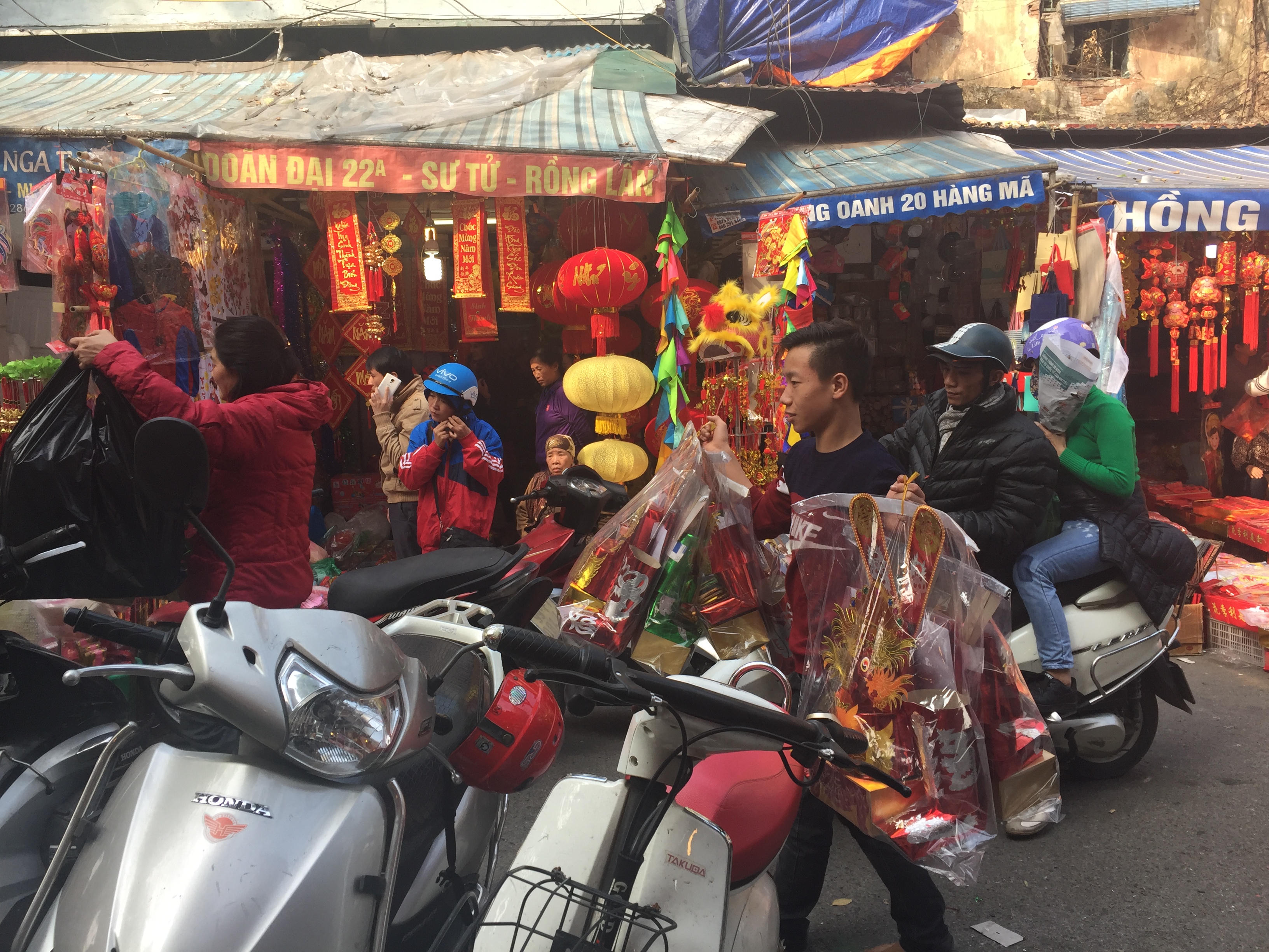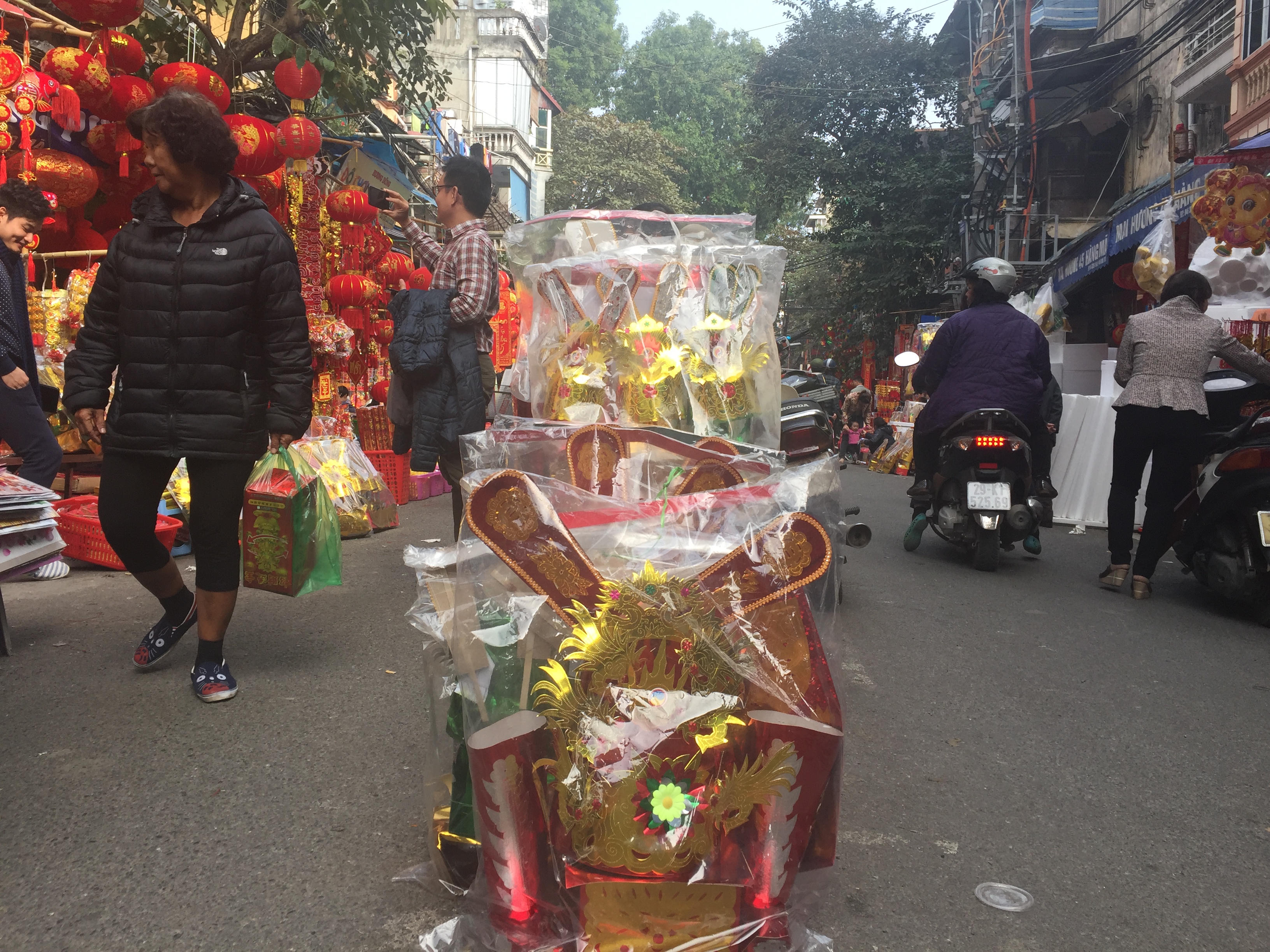 Nhiều vật dụng trang trí phục vụ dịp Tết Nguyên Đán Đinh Dậu 2017 cũng đã được bày bán tại khắp các cửa hàng trên phố Hàng Mã và một vài cửa hàng ở các phố lân cận.