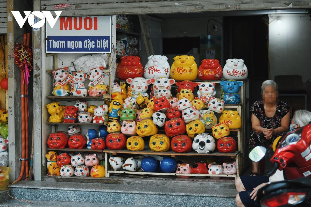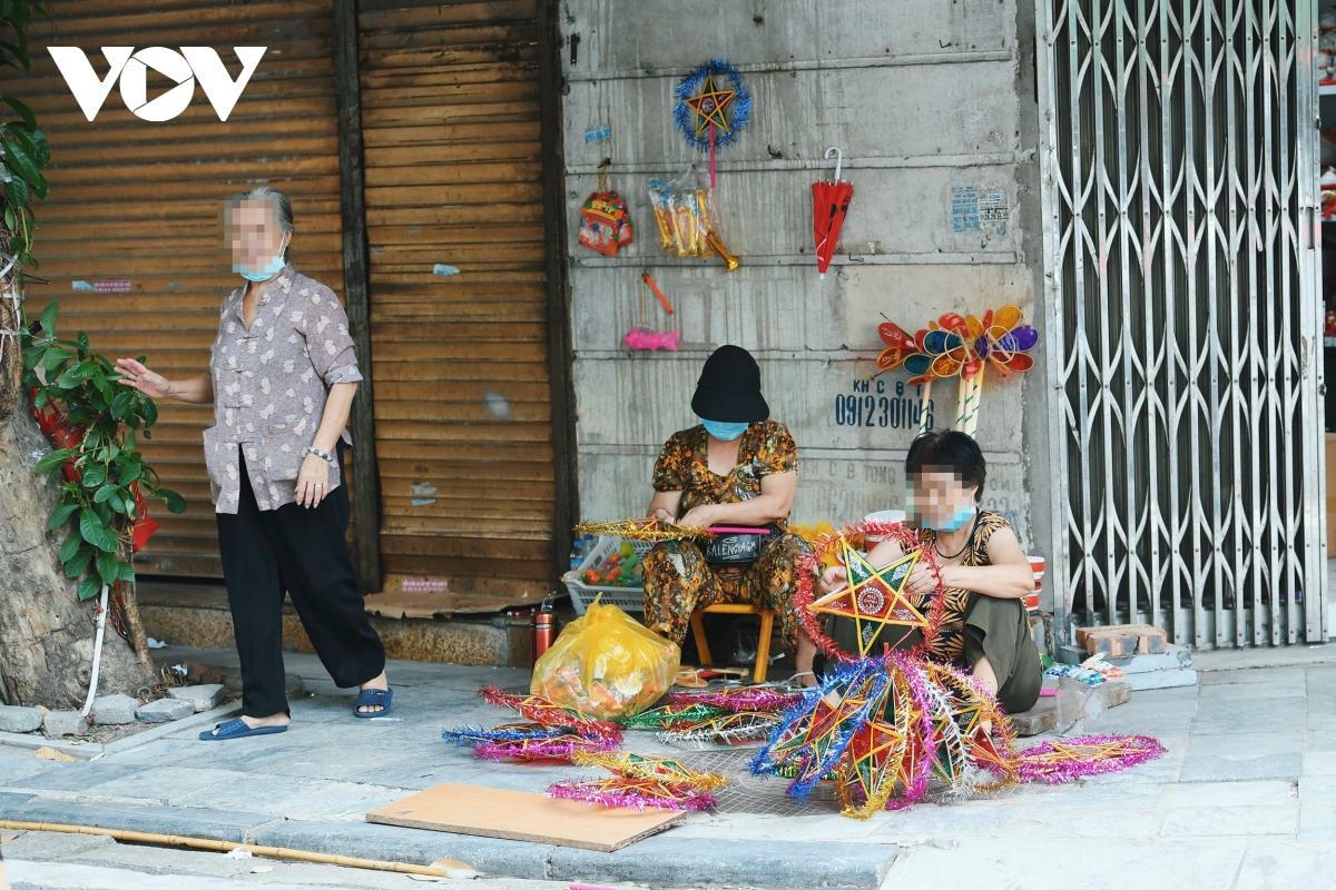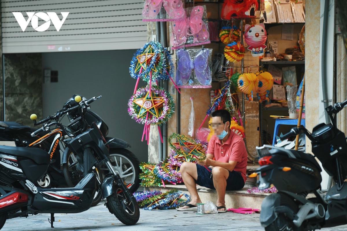 Không được mở cửa, nhiều tiểu thương bày đèn trang trí, đồ chơi ra vỉa hè, giắt lên cửa sắt để bán cho khách.