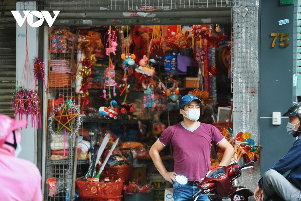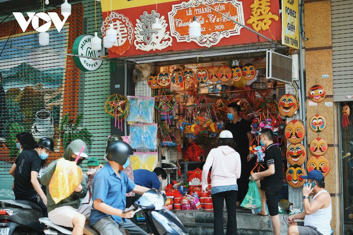 VOV.VN - Do đồ chơi, đồ trang trí không phải mặt hàng thiết yếu nên các cửa hàng trên phố Hàng Mã không được phép hoạt động. Tuy nhiên, để đáp ứng nhu cầu của người dân, một số cửa hàng vẫn mở cửa để bán đồ chơi Trung thu.