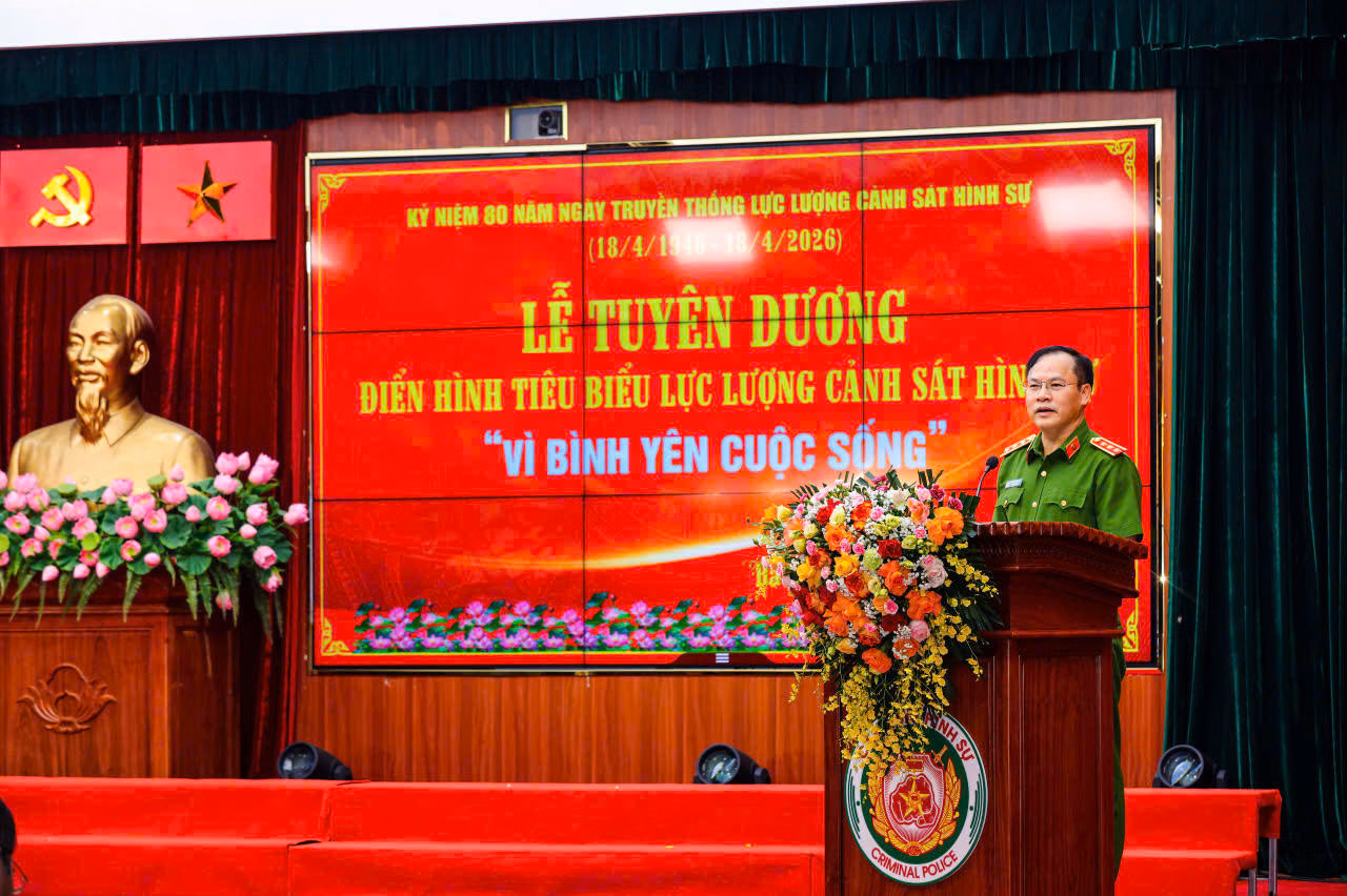 (PLVN) - Nhân dịp kỷ niệm 80 năm Ngày truyền thống lực lượng Cảnh sát hình sự (18/4/1974 - 18/4/2026), ngày 18/4, Cục Cảnh sát hình sự (Bộ Công an) đã tổ chức Lễ tuyên dương các điển hình tiêu biểu với chủ đề “Vì bình yên cuộc sống”. Thượng tá Nguyễn Văn Hiển - Phó Phòng Hình sự Công an TP Hải Phòng đã được vinh danh tại buổi Lễ này.