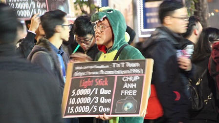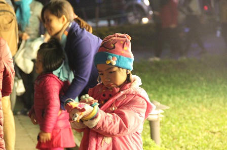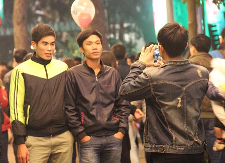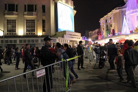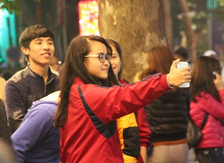 | Tại Hồ Gươm, khu vực Tượng đài Lý Thái Tổ, lượng người xuống phố đón Giao thừa đang tập trung về mỗi lúc một đông hơn. |