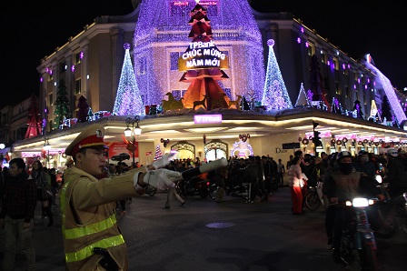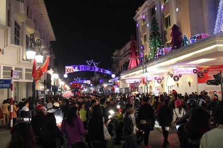 (PLO) - Chỉ còn chưa tới 1 giờ, năm 2015 sẽ "nhường bước" cho 2016. Các tuyến phố trung tâm, các cửa hàng, trung tâm thương mại… của Hà Nội đang lung linh sắc màu chào năm mới.
