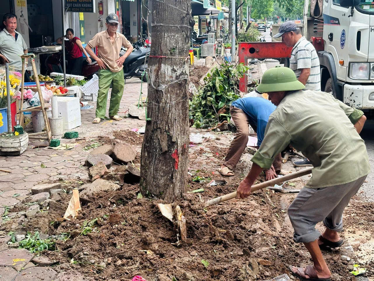 Thực hiện chỉ đạo Văn bản số 11065/VP-ĐT của Văn phòng UBND Thành phố Hà Nội về công tác khắc phục thiệt hại sau cơn bão số 3, tại nhiều tuyến phố, việc thu gom trồng dựng lại cây xanh gãy đổ nhanh chóng được triển khai.