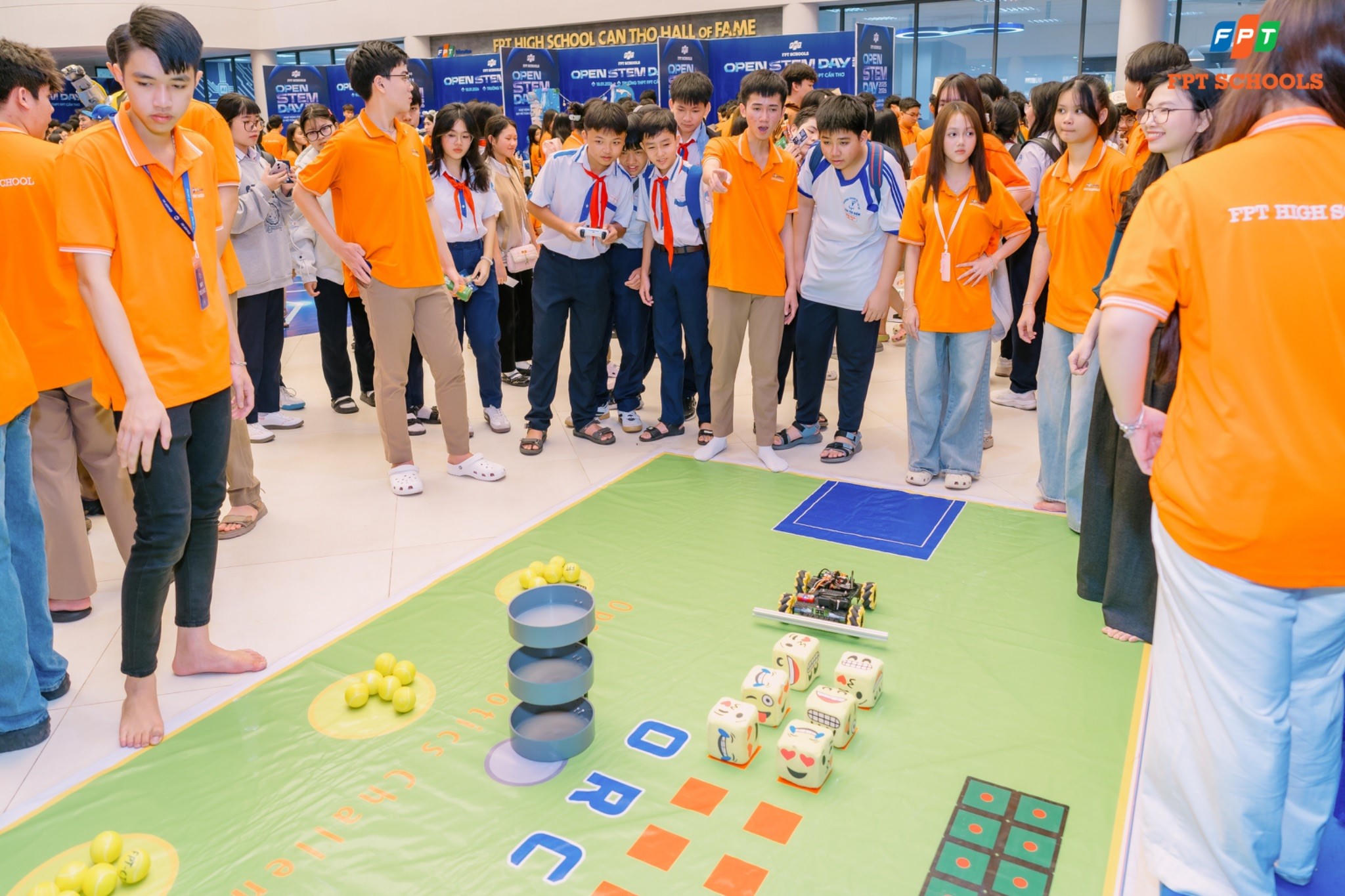 Bên cạnh đó, cuộc thi thiết kế “Gian hàng Trải nghiệm Sáng tạo” dành cho học sinh Phổ thông FPT Cần Thơ đã thu hút sự quan tâm của nhiều học sinh và phụ huynh. Học sinh trực tiếp xây dựng ý tưởng, thiết kế và vận hành các trạm trải nghiệm STEM dành cho học sinh Trung học cơ sở.