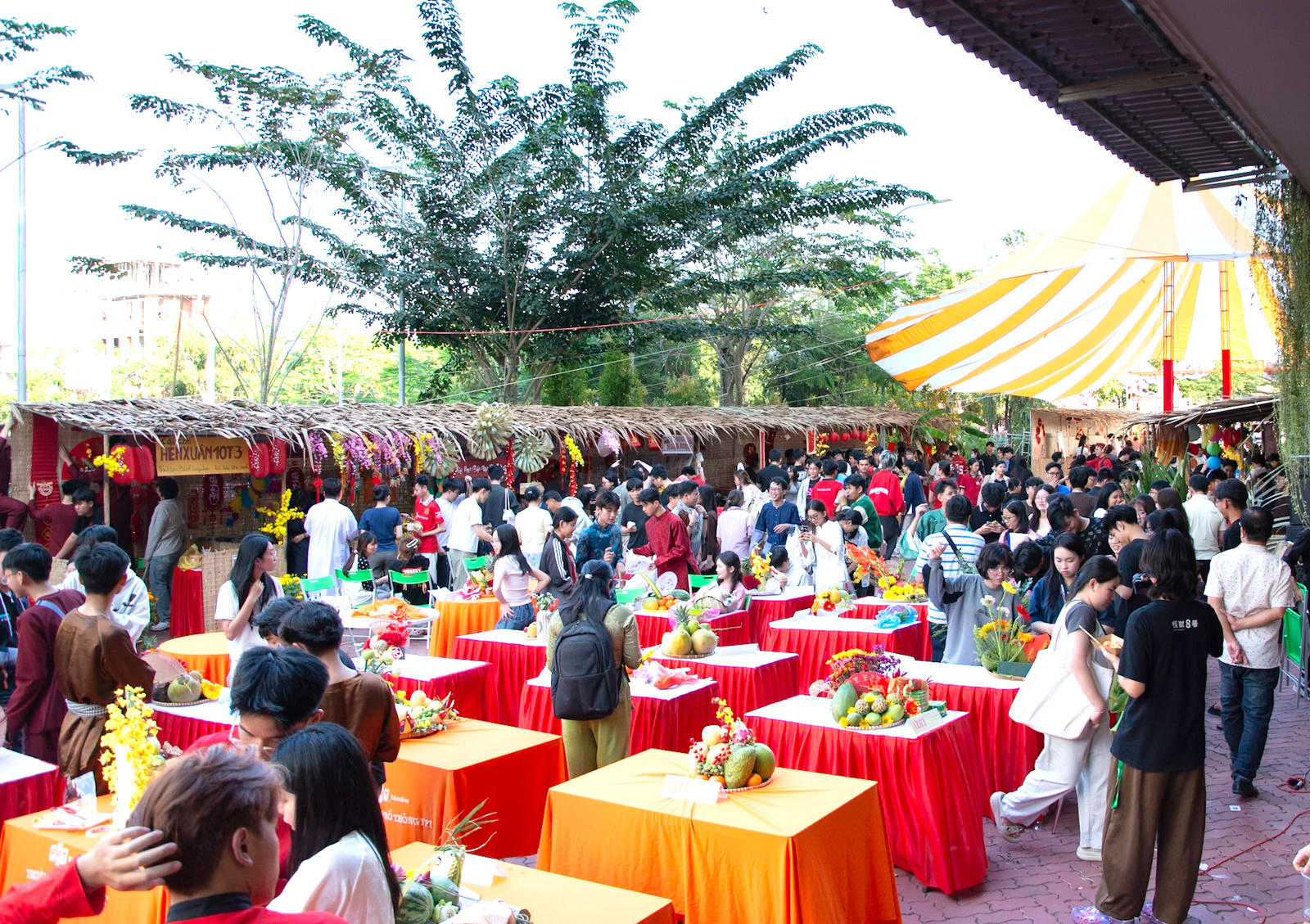Các gian hàng được đầu tư công phu theo chủ đề “Tết miền Tây”, tái hiện sinh động không gian chợ Tết, hình ảnh bánh tét, mai vàng, ghe xuồng, làng quê Nam Bộ, góp phần lan tỏa nét đẹp truyền thống đến thế hệ trẻ.