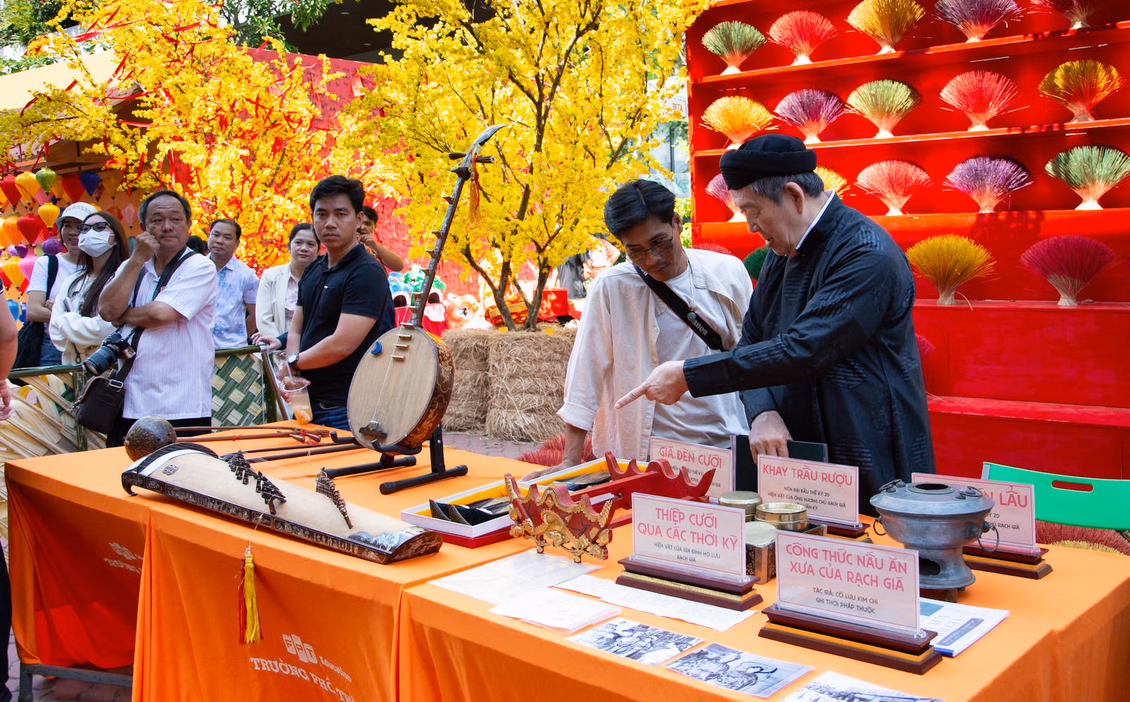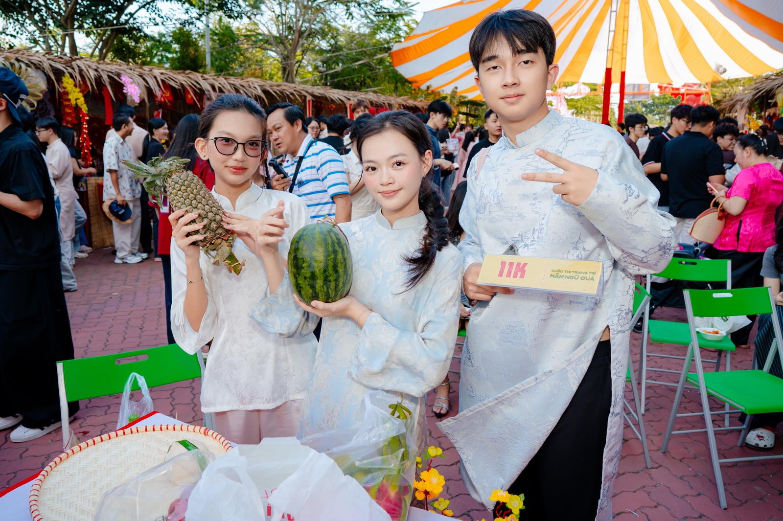 Các gian hàng ẩm thực do học sinh tổ chức, bày bán nhiều món ăn đặc trưng Nam Bộ được trang trí bắt mắt, thu hút đông đảo người tham quan. Bên cạnh đó, các tiểu cảnh Tết đa sắc màu cũng trở thành điểm check-in yêu thích của nhiều người.