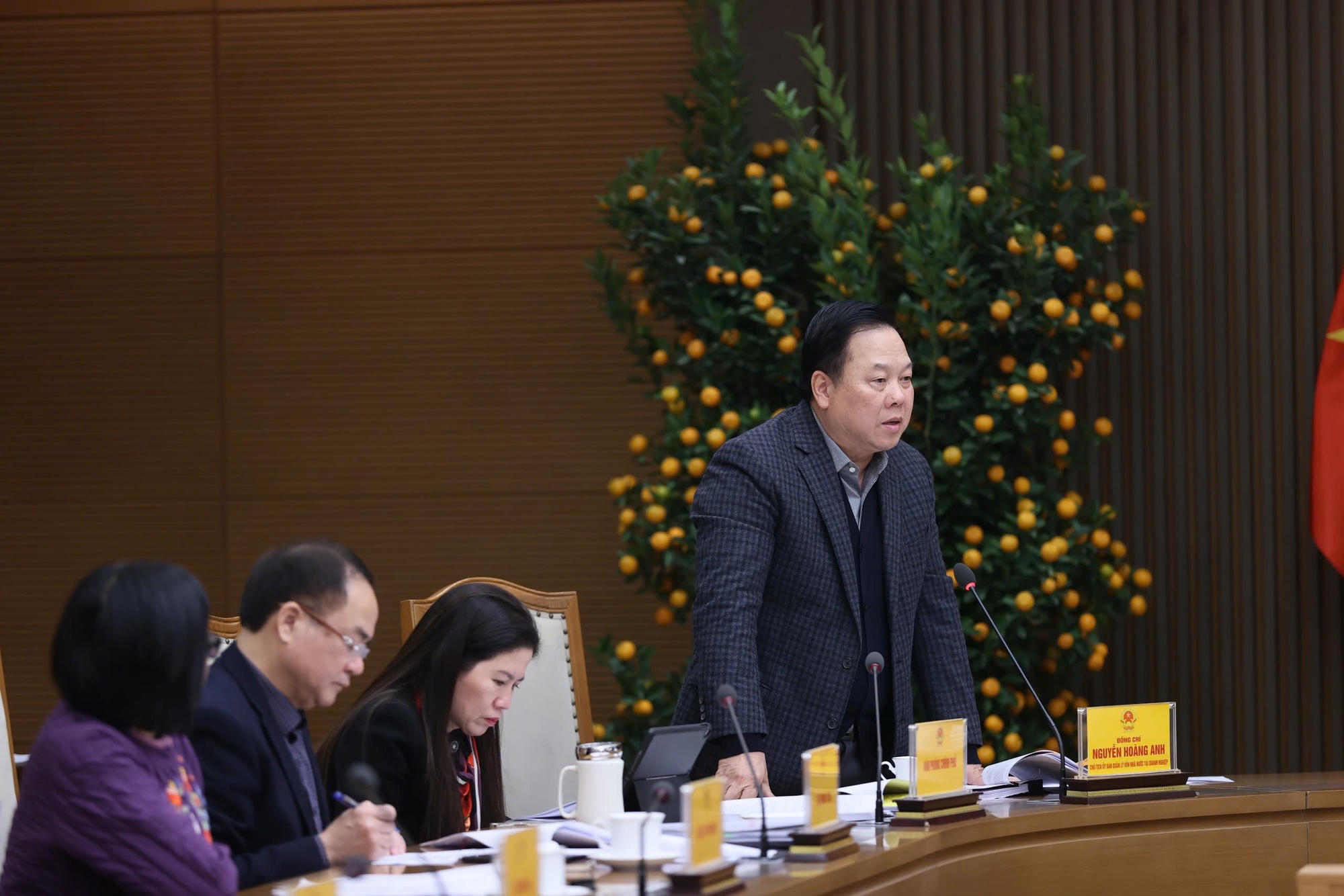 Chủ tịch Ủy ban Quản lý vốn Nhà nước tại doanh nghiệp Nguyễn Hoàng Anh phát biểu tại cuộc họp - Ảnh: VGP/Trần Mạnh |