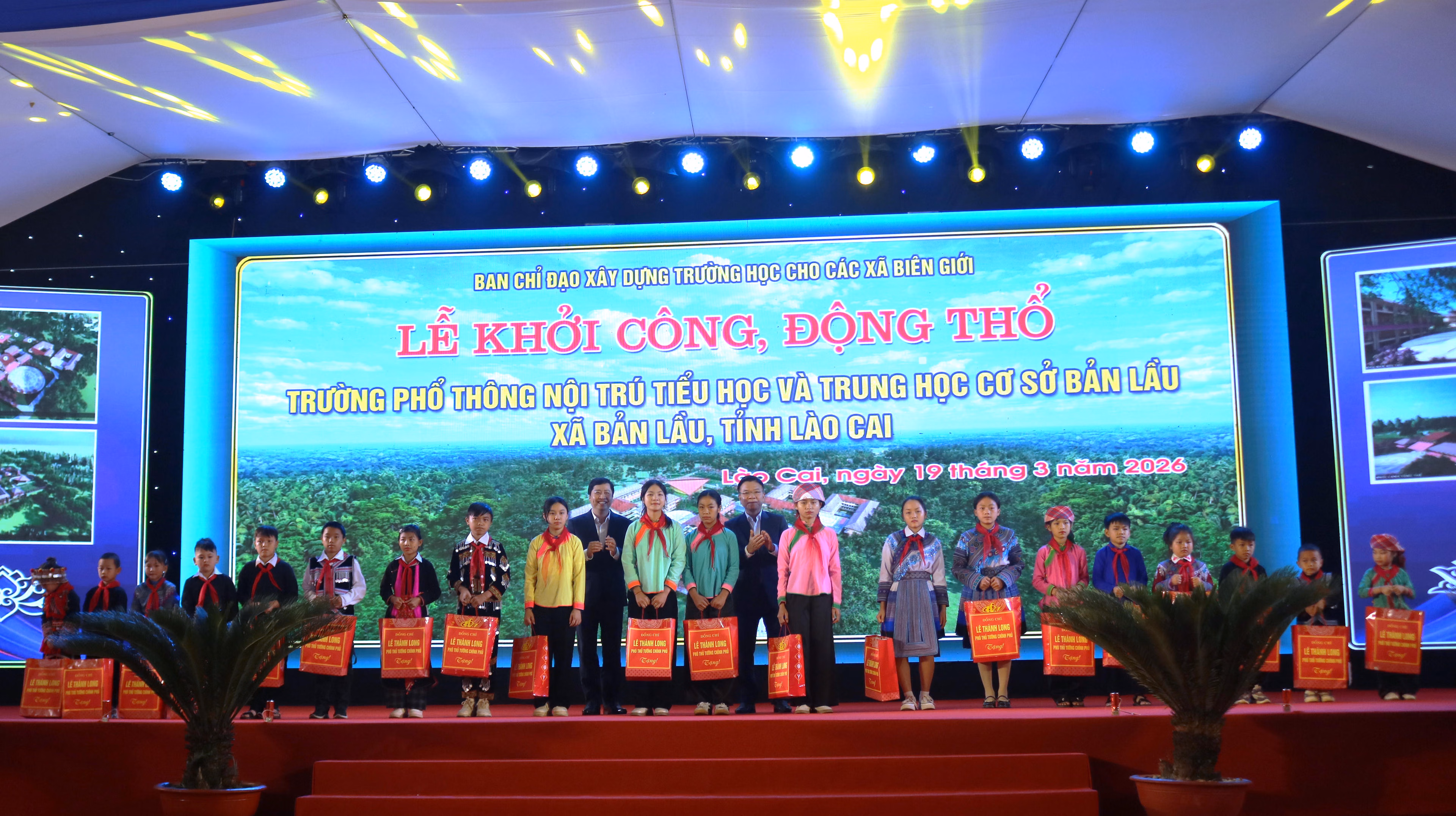 (PLVN) - Sáng nay, 19/3, tại xã Bản Lầu, tỉnh Lào Cai, Phó Thủ tướng Chính phủ Lê Thành Long đã dự lễ khởi công, động thổ Trường phổ thông nội trú liên cấp Tiểu học và Trung học cơ sở Bản Lầu.