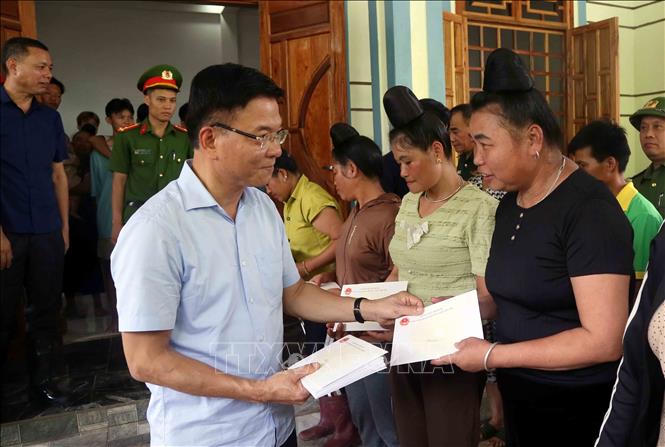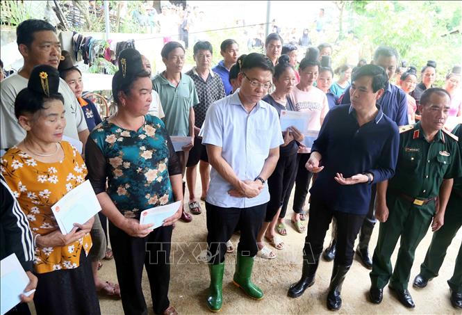 Chủ tịch UBND tỉnh Sơn La Hoàng Quốc Khánh thăm, tặng quà nhân dân bản Phiêng Nghè, xã Chiềng Đen, thành phố Sơn La (Sơn La) bị ngập lụt do ảnh hưởng của cơn bão số 2. |