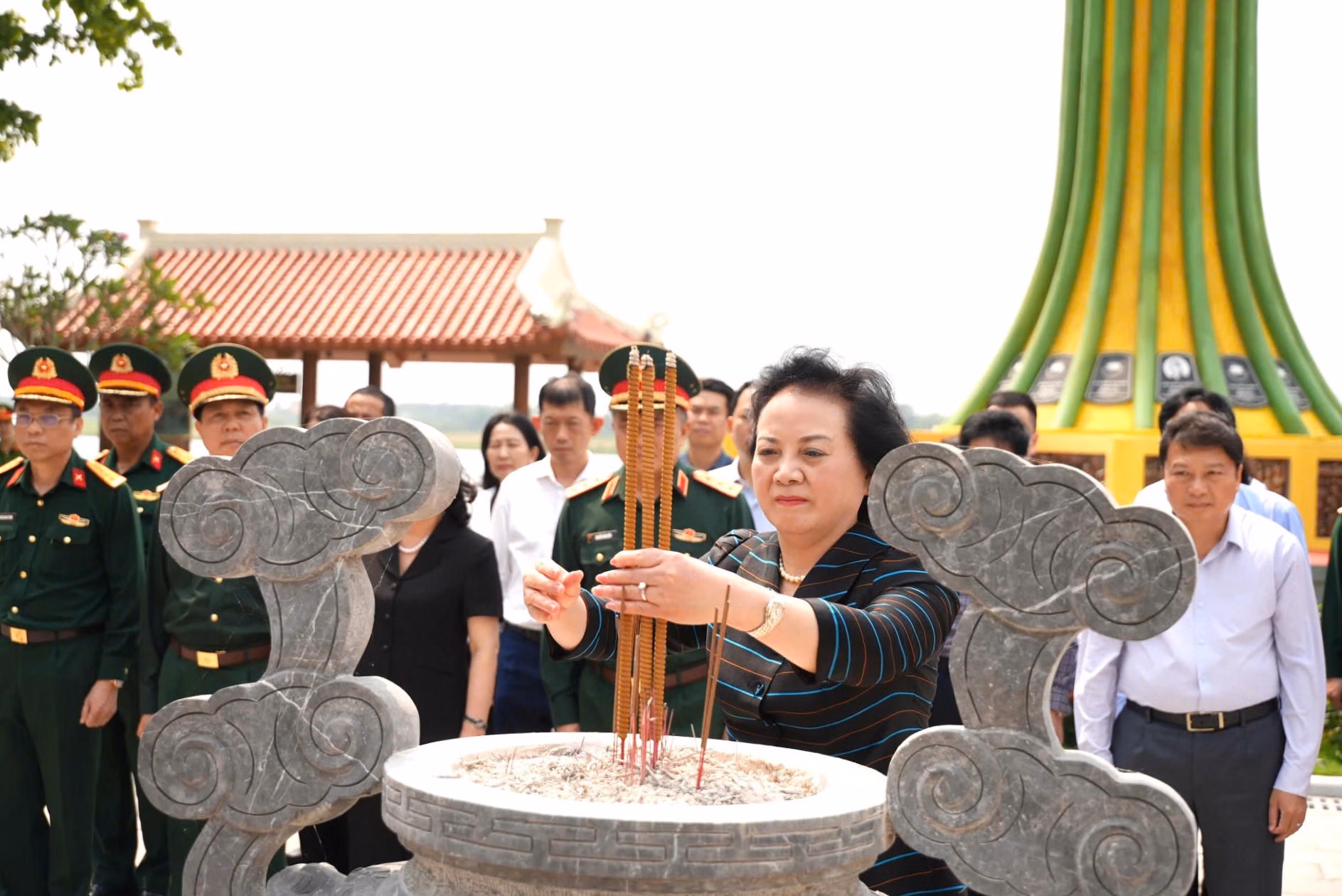 Trong không khí trang nghiêm, các đại biểu đã kính cẩn dâng hương, dành phút mặc niệm, bày tỏ lòng biết ơn sâu sắc đối với những người con ưu tú của dân tộc đã anh dũng hy sinh vì độc lập, tự do của Tổ quốc, vì sự thống nhất đất nước và hạnh phúc của Nhân dân.