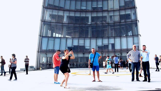 | Phó Thủ tướng cùng phái đoàn tham quan và chụp hình lưu niệm tại sân đỗ trực thăng trên tầng 52 của Bitexco Financial Tower |
