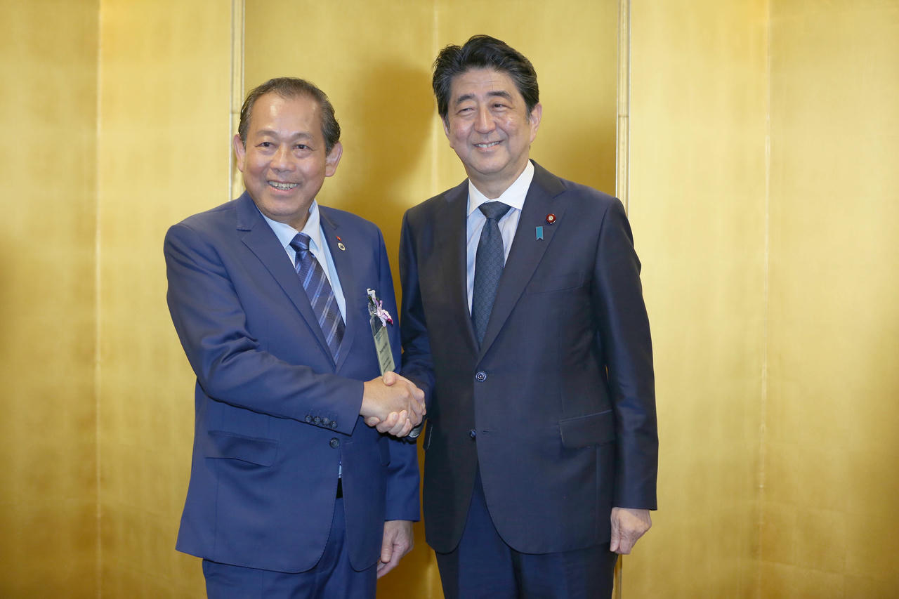Tại buổi chào Thủ tướng Sin-dô A-bê, Phó Thủ tướng Thường trực Chính phủ Trương Hòa Bình bày tỏ vui mừng trước sự phát triển mạnh mẽ trên mọi lĩnh vực của quan hệ Đối tác chiến lược sâu rộng Việt Nam - Nhật Bản; cảm ơn Hoàng gia, Chính phủ và Quốc hội Nhật Bản đã đón tiếp trọng thị Chủ tịch nước Trần Đại Quang và Phu nhân nhân dịp thăm cấp Nhà nước tới Nhật Bản vừa qua; đề nghị hai nước phối hợp chặt chẽ tại Hội nghị Diễn đàn kinh tế thế giới về ASEAN tháng 9/2018 tại Việt Nam và Hội nghị cấp cao Nhật Bản – Mê Công tháng 10/2018 tại Nhật Bản.