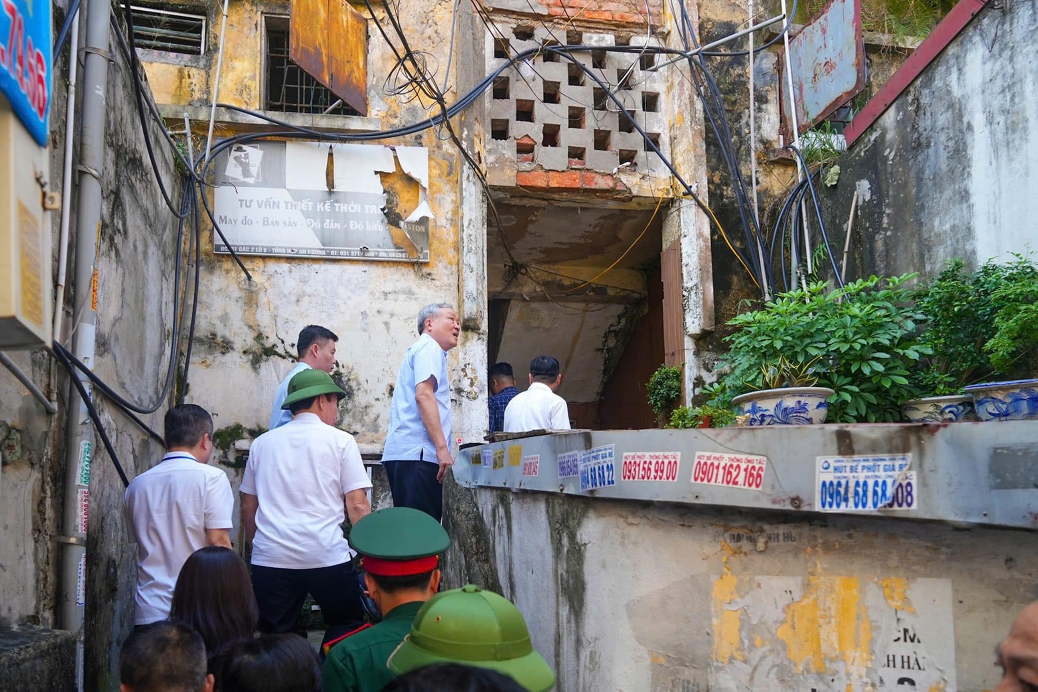 | Phó Thủ tướng Thường trực Nguyễn Hoà Bình đi kiểm tra tình trạng xuống cấp của Khu tập thể 3 tầng An Dương, quận Lê Chân. |