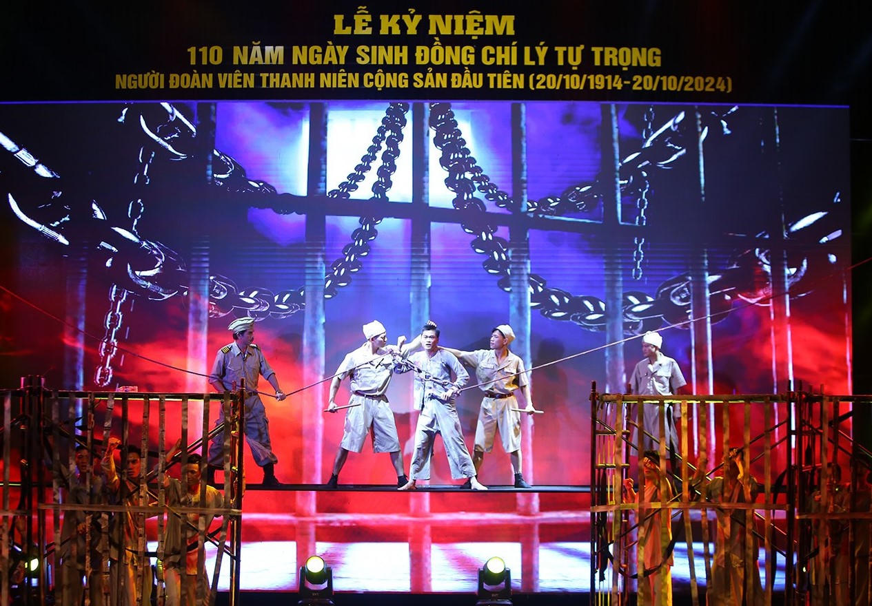 Chương trình nghệ thuật “Lý Tự Trọng - Người ĐVTN cộng sản đầu tiên” gồm 3 chương: Tuổi nhỏ hoài bão lớn, Đường cách mạng và Sáng mãi tên anh. Ảnh: PV |