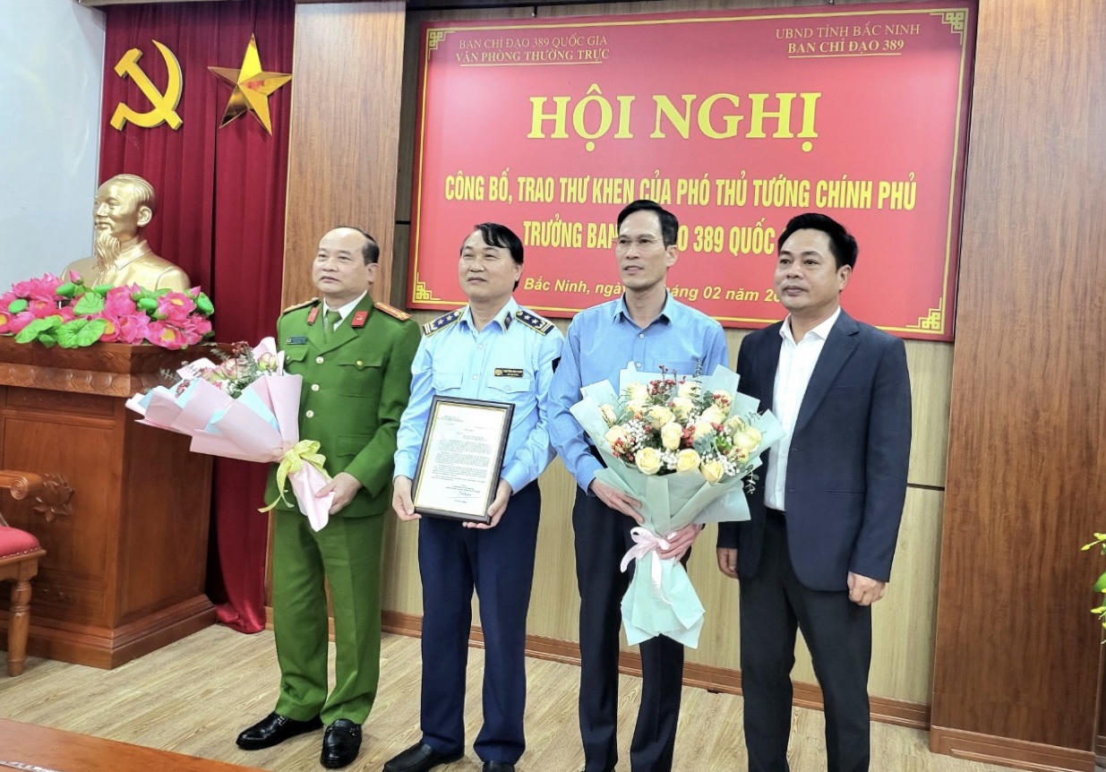 Ban Chỉ đạo 389 tỉnh Bắc Ninh và Cục QLTT tỉnh Bắc Ninh nhận Thư khen chiến công của Phó thủ tướng Chính phủ Trần Lưu Quang, Trưởng ban Chỉ đạo 389 Quốc gia. |