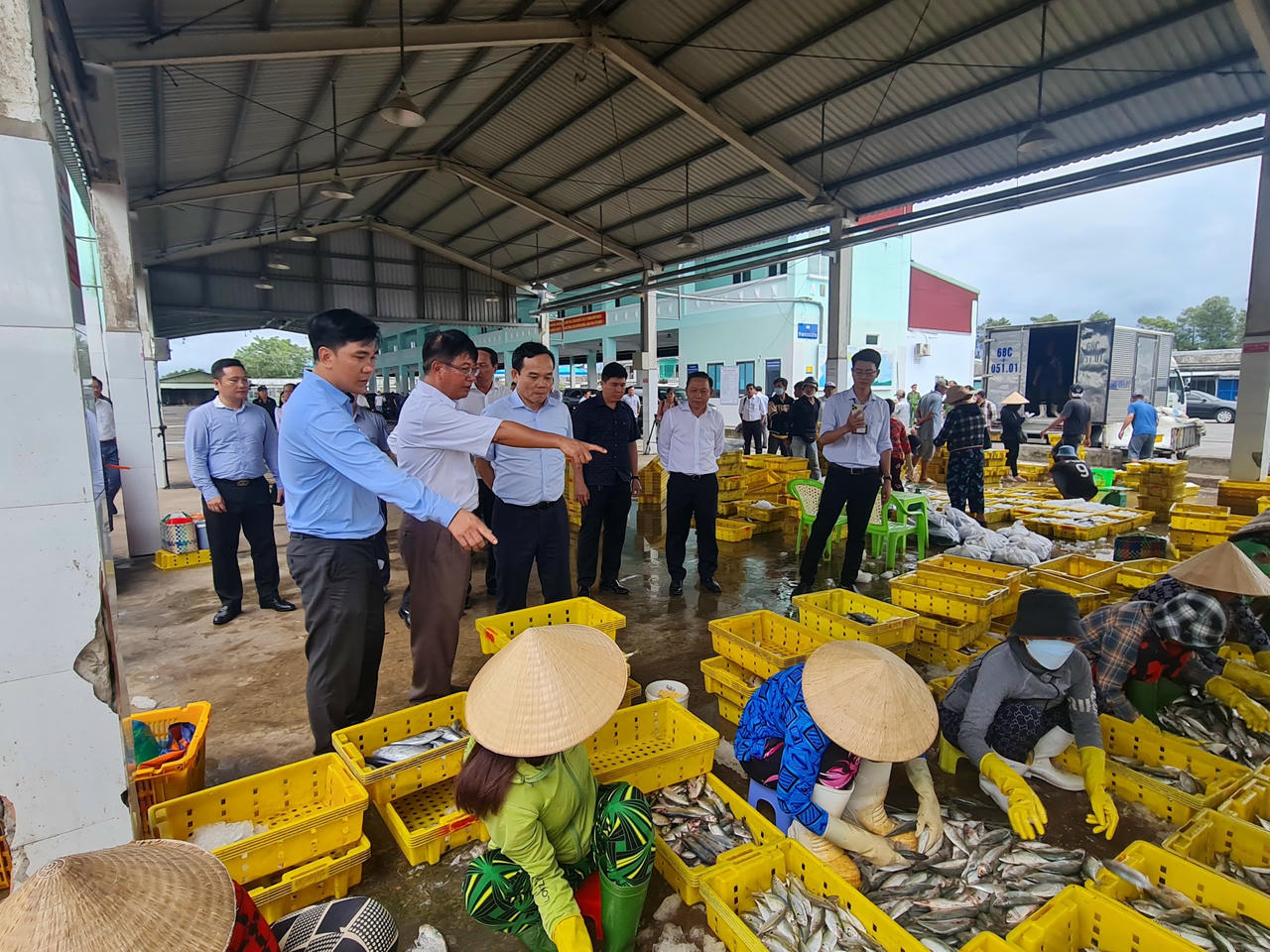 Phó Thủ tướng Trần Lưu Quang và đoàn công tác tại Cảng cá Tắc Cậu |