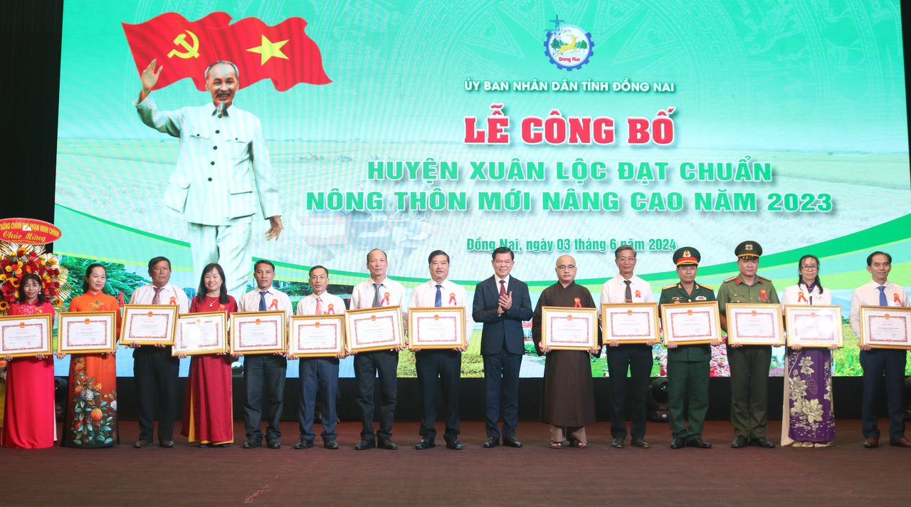 Dịp này, UBND tỉnh Đồng Nai đã khen thưởng cho 15 tổ chức và 30 cá nhân có thành tích xuất sắc trong xây dựng huyện Xuân Lộc đạt chuẩn nông thôn mới nâng cao.
