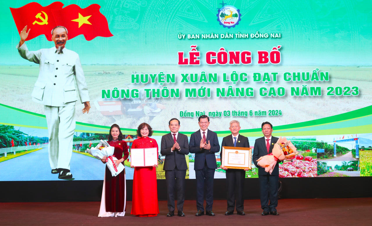 Ghi nhận nỗ lực của Đảng bộ, chính quyền và nhân dân huyện Xuân Lộc, Phó Thủ tướng Trần Lưu Quang đã trao Quyết định công nhận Huyện nông thôn mới nâng cao cho đại diện huyện Xuân Lộc.